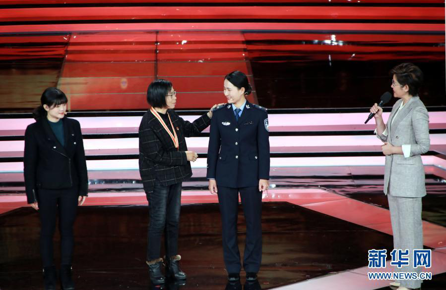 张桂梅(左二)在“时代楷模”发布仪式上(12月7日摄)。新华社记者 潘旭 摄
