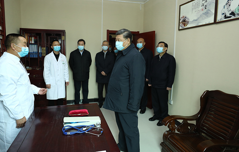 随后,习近平来到老县镇卫生院,了解基层卫生防疫、医疗保障工作,并向坚守在基层防疫抗疫一线广大医务人员表示亲切慰问。习近平指出,要加快补齐公共卫生服务短板,加强农村、社区等基层疫情防控能力建设,把各项防控措施常态化。