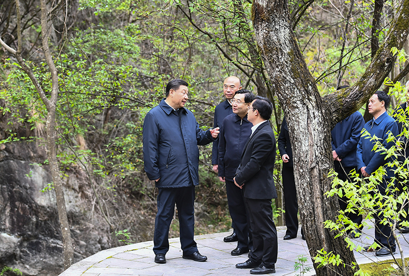 4月20日至23日,中共中央总书记、国家主席、中央军委主席习近平在陕西考察。这是4月20日,习近平在位于秦岭山脉东段的牛背梁国家级自然保护区羚牛谷,了解秦岭生态环境保护情况。