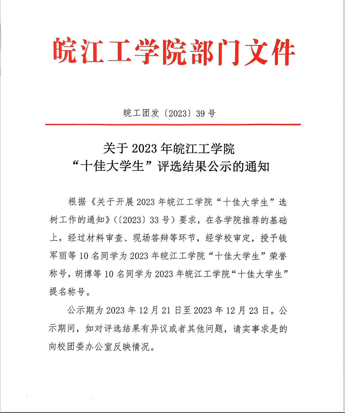 团39号--关于AC米兰官方网站2023年“十佳大学生”评选结果的公示