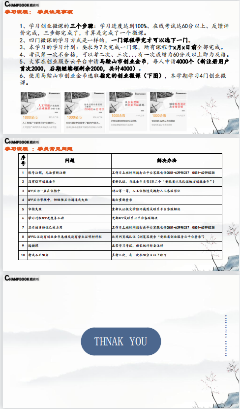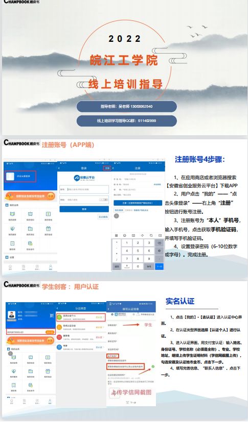 1.请各学院通知参加同学于2022年5月20日之前加入2022年云平台创业培训群:511402999,在云平台培训老师的指导下组织同学登录“安徽省创业服务云平台”完成注册认证以及电子创业劵的申请,并进行培训考核。