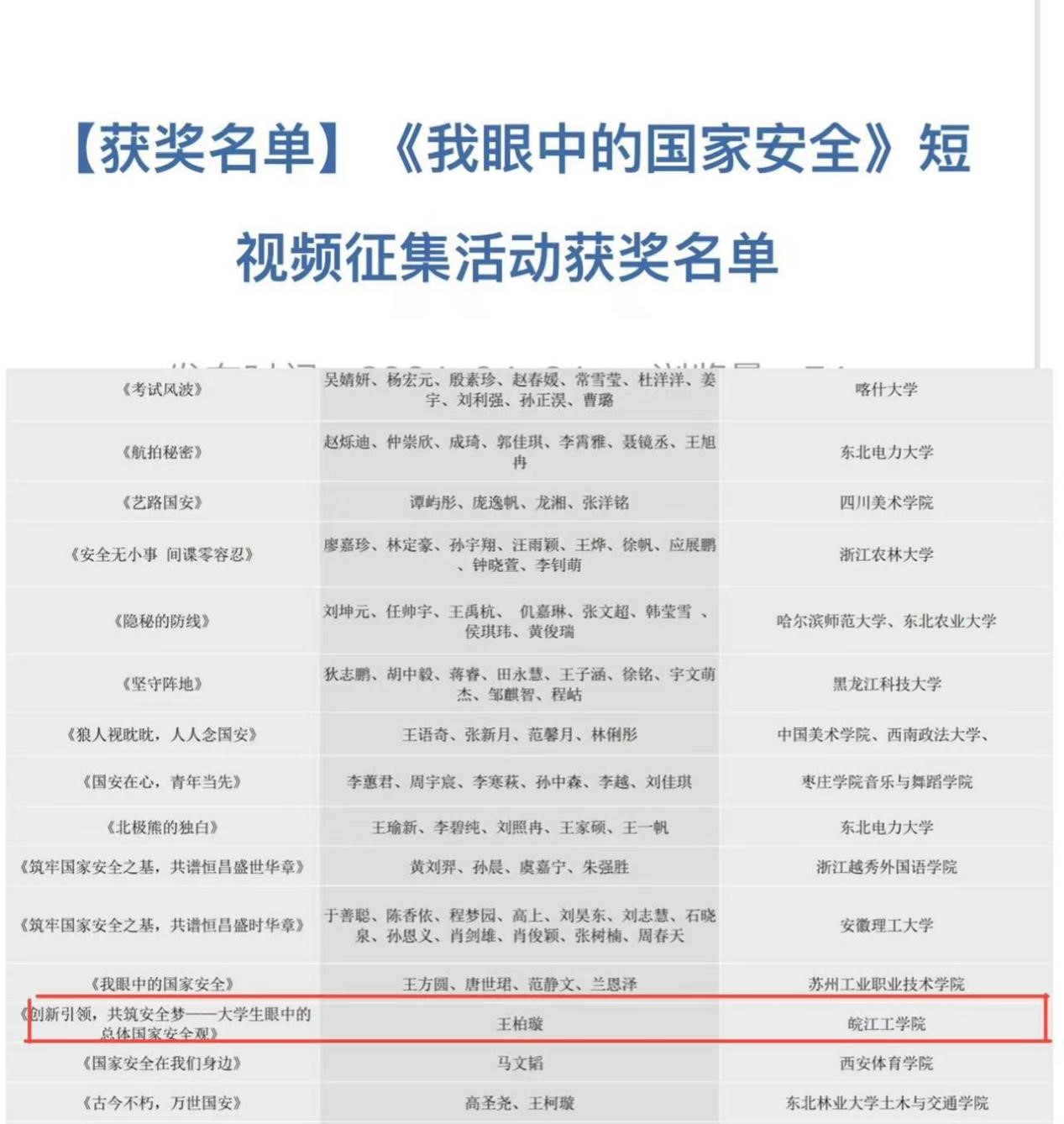 米兰作品在首届大学生《我眼中的国家安全》 短视频大赛中荣获优秀奖