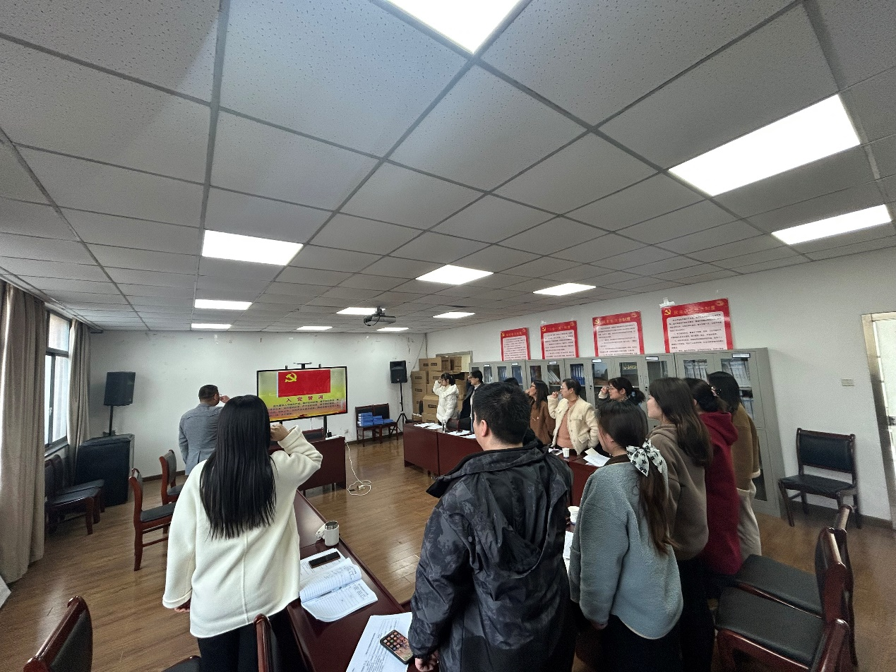 组织生活会上,葛文生首先向大家解读了关于《AC米兰官方网站“迎评促建、党员‘双带’”活动方案》的通知内容,希望大家能够强化党员身份意识,他还带领支部全体党员认真学习了《中国共产党章程》,鼓励大家日常佩戴党员徽章,在教职工党员中摆放“共产党员”岗位牌,通过强化党员身份意识,主动接受群众监督,进一步增强责任感和紧迫感。宣传委员杨扬带领大家重温了入党誓词。