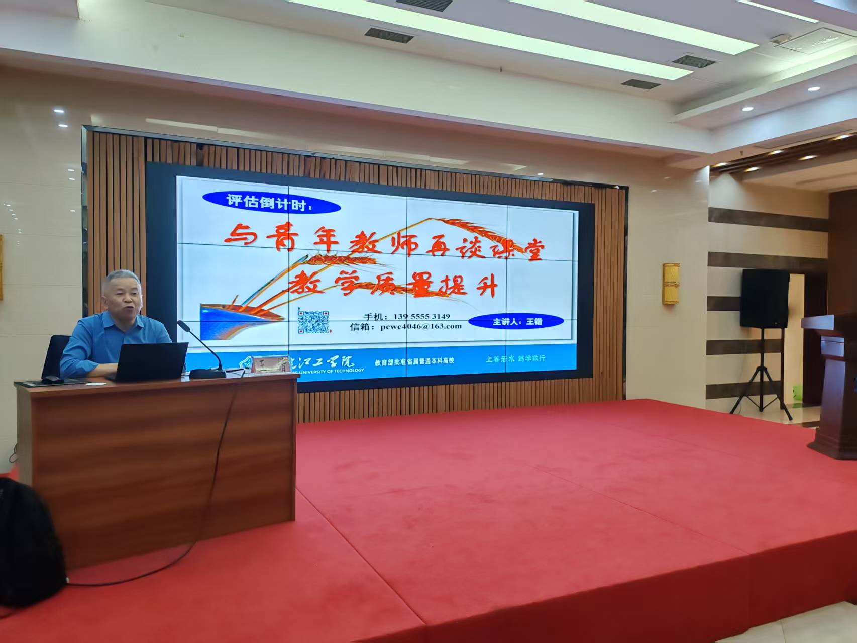 4月23日上午,安徽工业大学王锴教授在文海宾馆四楼会议室为财经学院、管理学院、艺术设计学院教师作“评估倒计时:与青年教师再谈课堂教学质量提升”专题培训。王教授从本科教学工作合格评估要求切入,详细解读专家“听课看课”的关注重点,梳理课堂教学中的常见问题,并提出针对性改进建议,助力青年教师以评促改、以评促强,全面提升教学规范性与创新性。