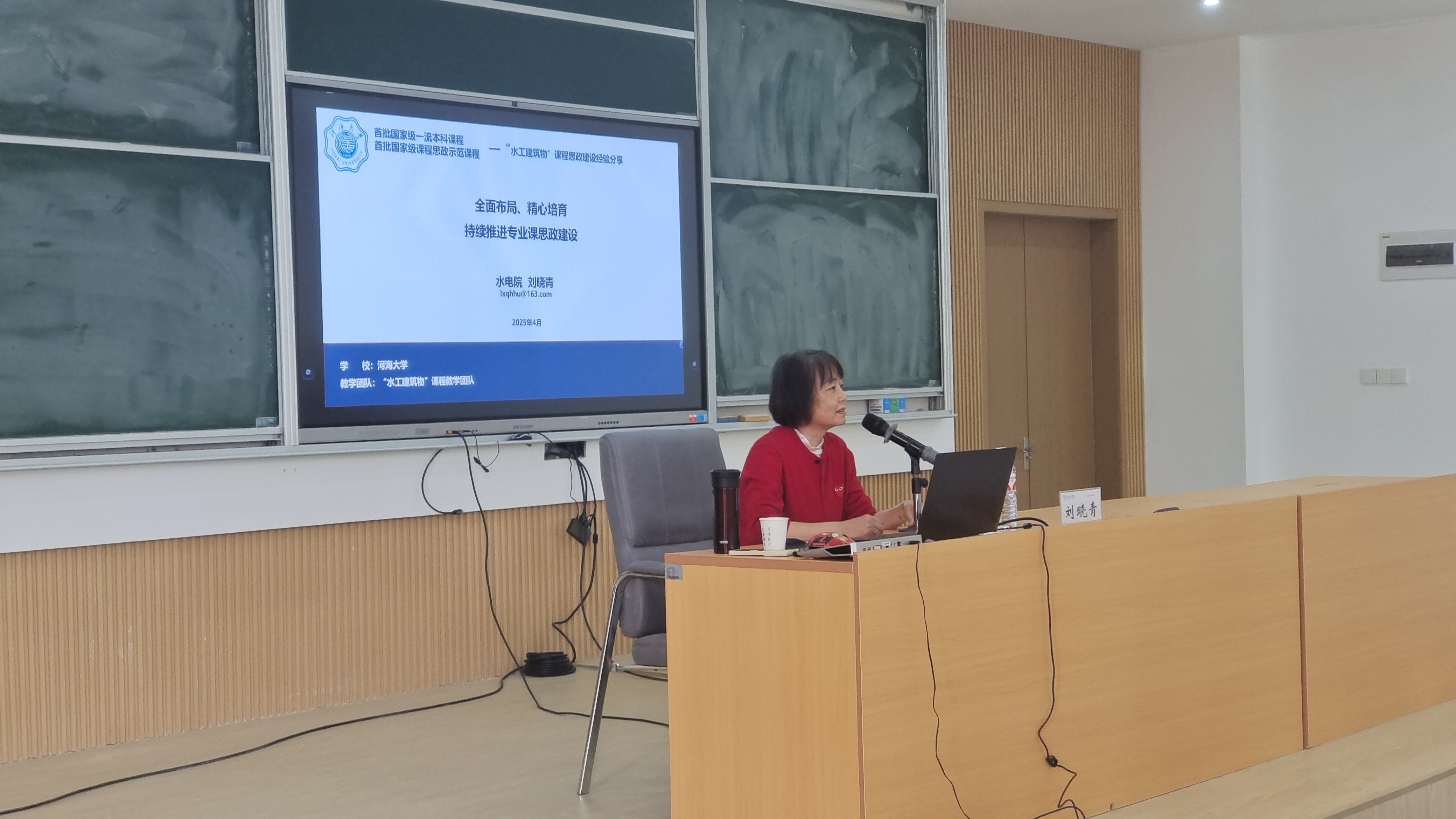 4月16日,河海大学刘晓青教授以“全面布局、精心培育,持续推进专业课思政建设”为题,在水木楼南101为水利工程学院、土木工程学院教师作专题报告。刘教授结合“水工建筑物”课程建设经验,系统阐述了专业课思政元素的挖掘路径与融合策略,强调通过案例教学、实践引导等方式实现知识传授与价值引领的有机统一,为参训教师提供了可借鉴的课程思政建设范式。