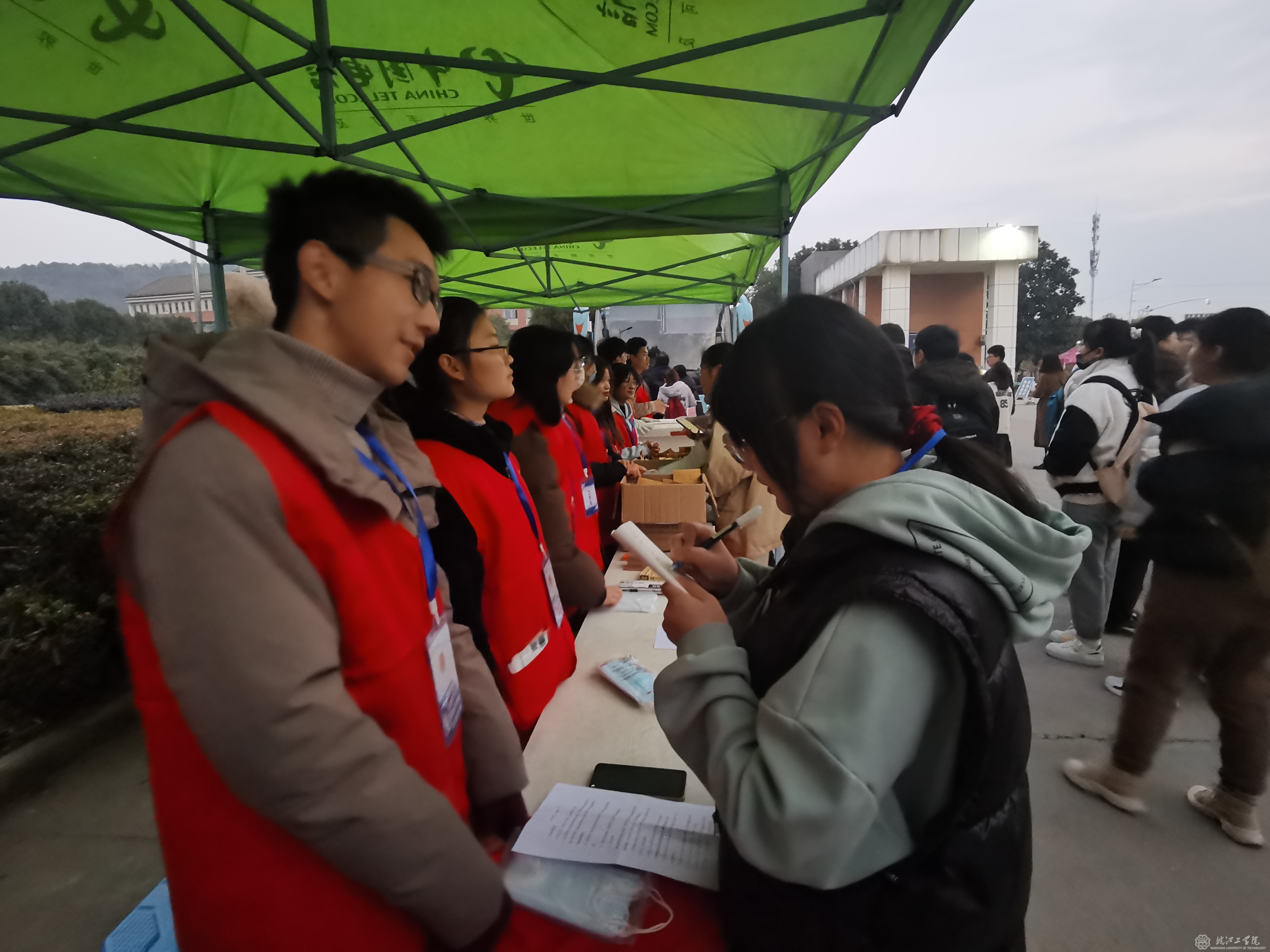 2021年全国硕士研究生入学考试于12月26日正式开始,为了给广大考生提供更好的考研环境,为考研同学加油鼓劲,26日一早,学校在霍里山校区举办了一场特别的“助力考研、爱心送考”活动。学校党委副书记张勤、部分行政部门的领导和老师,学校青年志愿者协会的同学来到现场为学子们送来亲切的问候和深深的祝福。