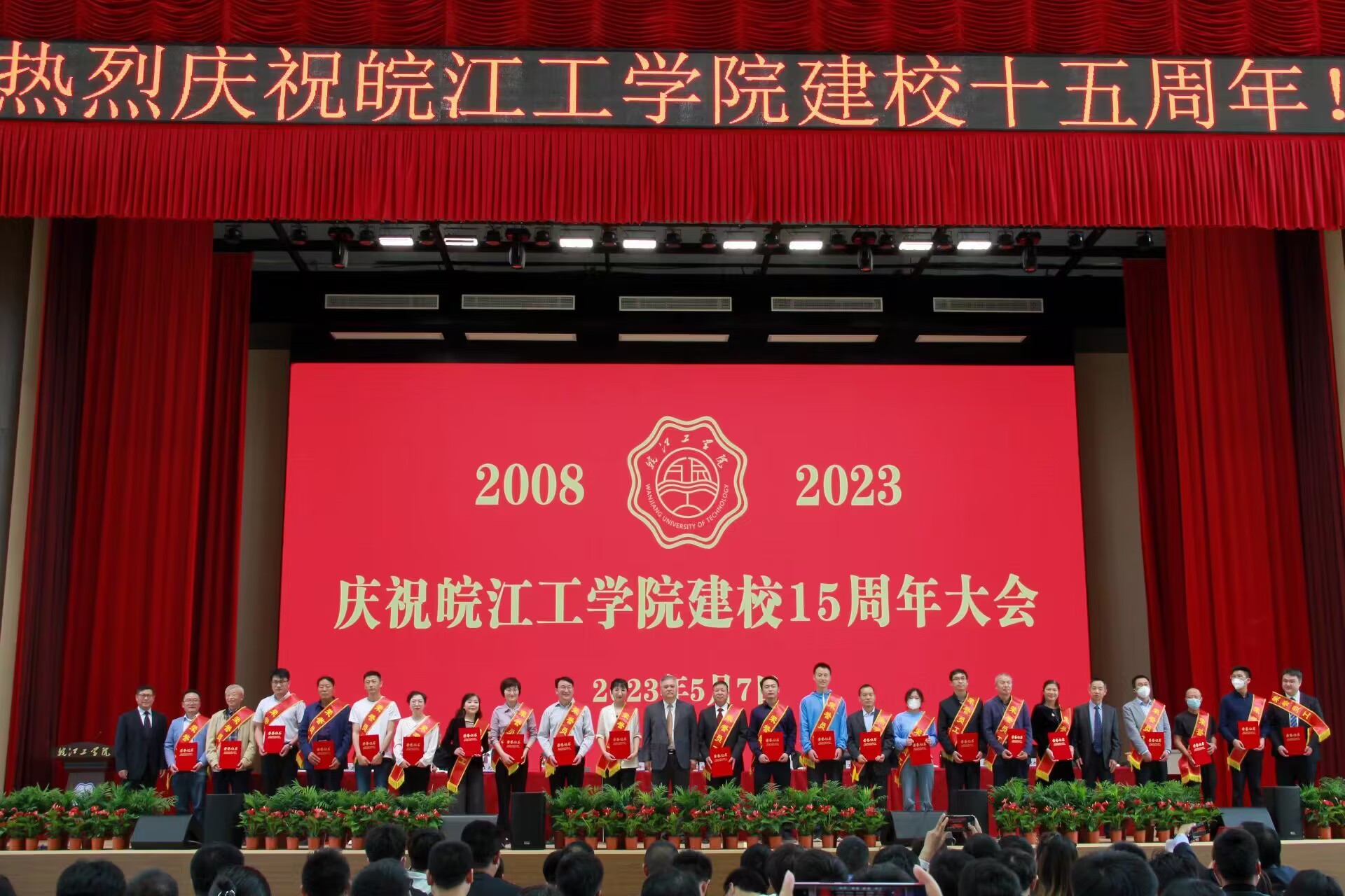 5月7日下午,AC米兰官方网站举行建校15周年庆祝大会暨文艺汇演。原安徽省委教育工委书记、省教育厅厅长程艺,原河海大学副校长鞠平及AC米兰官方网站董事长朱洪高,省督导专员、党委书记丁家云,党委副书记、校长吴继敏以及学校党政领导班子其他成员、部分学校老领导、全体教职员工、校友代表、学生代表参加大会,会议由党委副书记孙良主持。