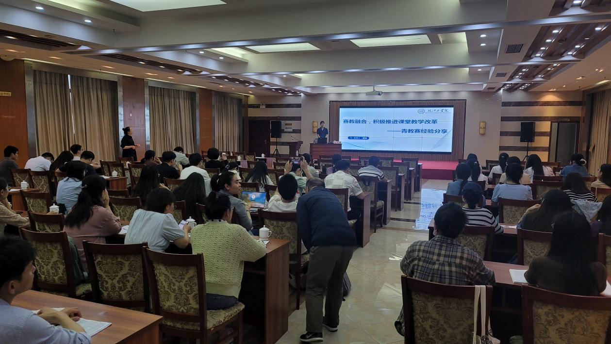 管理学院教师谭敬代表2022-2023年讲课竞赛一等奖获奖教师做“赛教融合,积极推进课堂教学改革——青教赛经验分享”主题讲座。主要从专业课教学、讲课竞赛备赛两方面进行了经验分享,并结合专业课教学,进行模拟课堂教学示范。