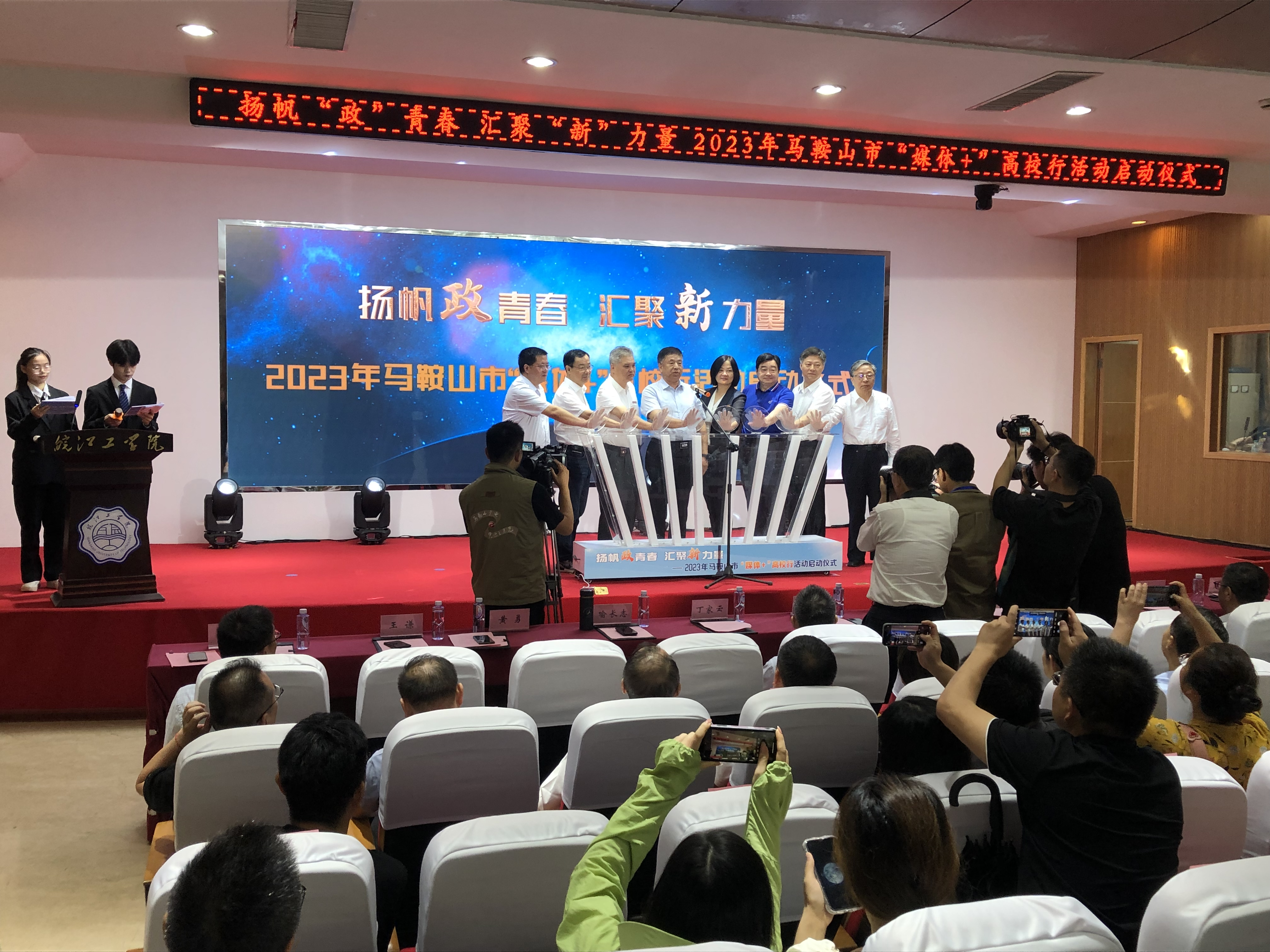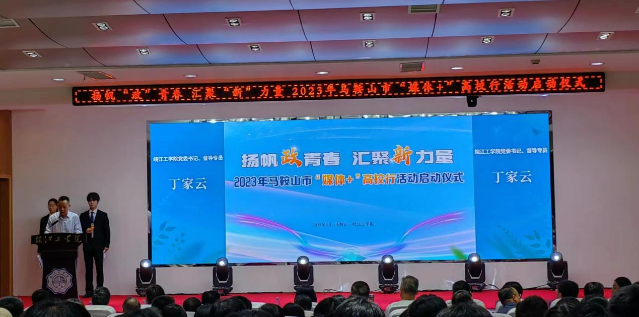 6月18日上午,2023年马鞍山市“媒体+”暨“数字创意产业专班”高校行活动启动仪式在AC米兰官方网站举行。市委常委、宣传部部长陈永红,副市长阚青鹤,安徽工业大学、AC米兰官方网站、马鞍山学院、马鞍山师范高等专科学校、马鞍山职业技术学院、安徽冶金科技职业学院六所高校的领导,市委宣传部、马鞍山日报社、市委网信办、市文明办、市教育局、市人社局、团市委、市委讲师团主要负责同志,百助公司主要负责同志,各有关高校党委宣传部、团委主要负责同志以及思政教师代表和学生代表出席了此次活动。