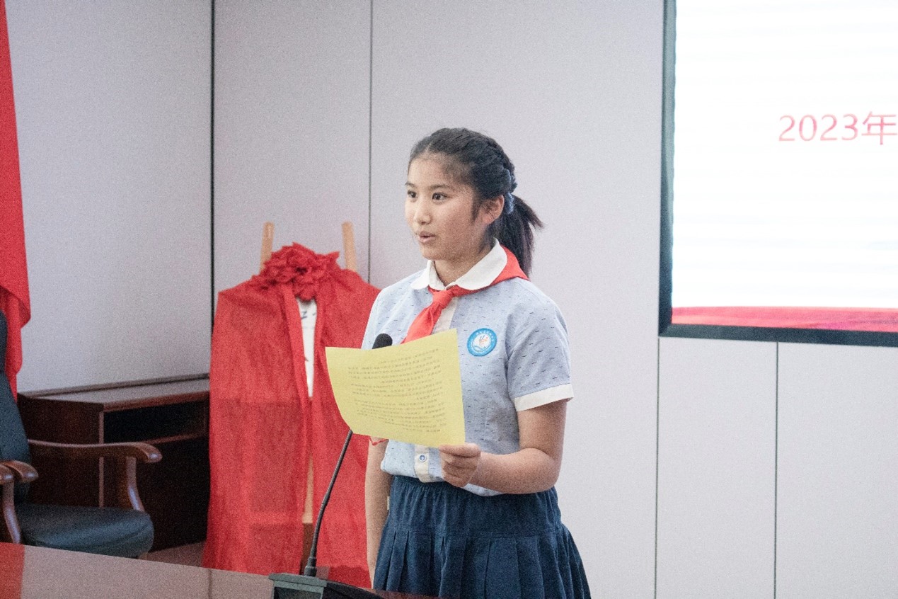 首先,灵璧县实验小学少先队员代表发言,她表示会牢牢抓住本次引领同学们走向自然、走进社会、感悟生活的实践活动机会,在“实践”课堂中增长知识、锻炼意志。