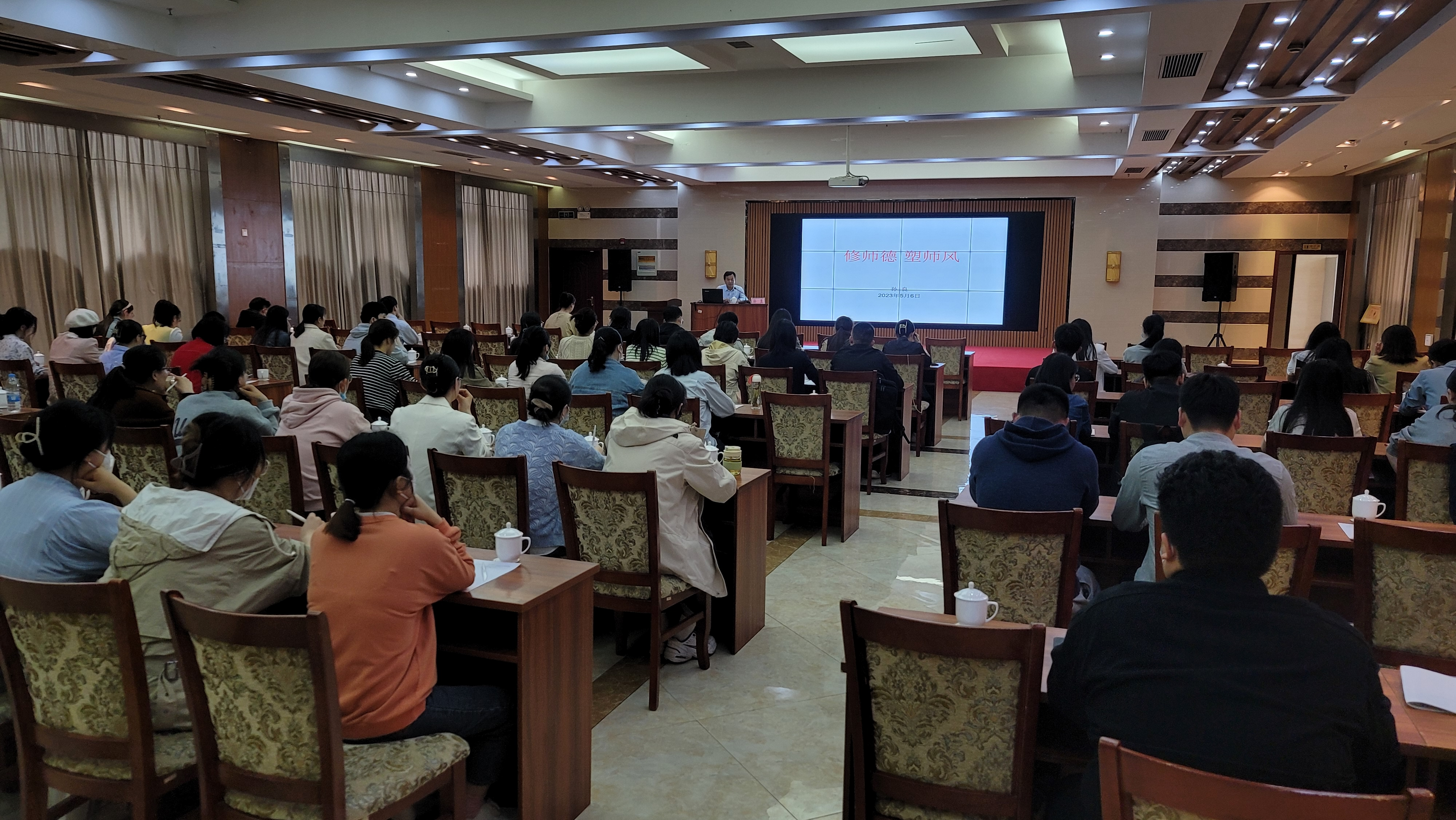 为积极引导广大教师坚定理想信念、厚植爱国情怀、涵养高尚师德,8月30日下午,教师发展中心率先在文海宾馆四楼多功能会议室召开庆祝2023年教师节暨师德师风建设专题会议。党委副书记孙良做主题发言,深入浅出的指出,“三个牢固树立”、“四有”好老师、“四个引路人”、“四个相统一”、“六要”等理论内涵,鼓励新教师在做好教学工作的过程中,坚持学习,把“师德”与“师风”,“校风”与“学风”落实到日常教育教学各个环节,并对全院教职工表达了节日的祝福,希望各位老师在学院及学校提供的良好平台上再接再厉、锐意进取、勇攀高峰,继续推动学院新发展。随后,教师发展中心魏莹莹结合先进教师模范和失范典型事例,对教育部和省教育厅师德师风相关文件进行解读。