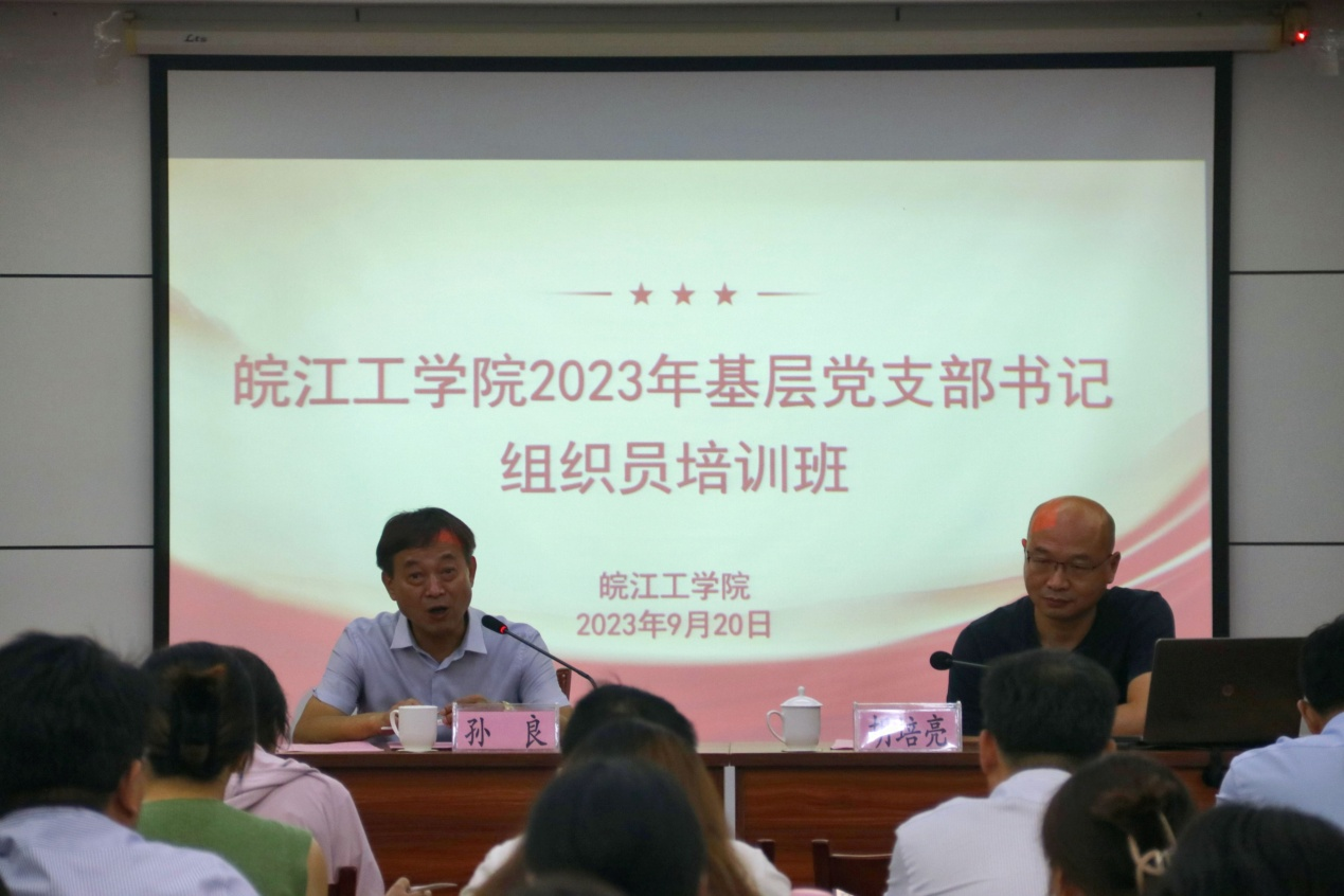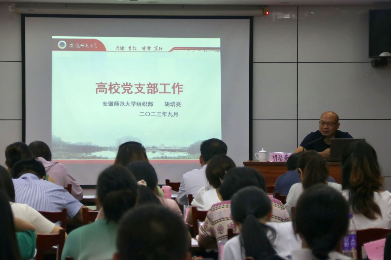 9月20日下午,米兰在文海宾馆5号会议室开展2023年基层党支部书记、组织员培训班专家辅导。安徽师范大学党委组织部正处级组织员胡培亮、安徽师范大学党委组织部组织科科长李高举应邀到校辅导授课。AC米兰官方网站党委副书记孙良,基层党支部书记、组织员、党务部全体人员参加。此次辅导授课由党委副书记孙良主持。