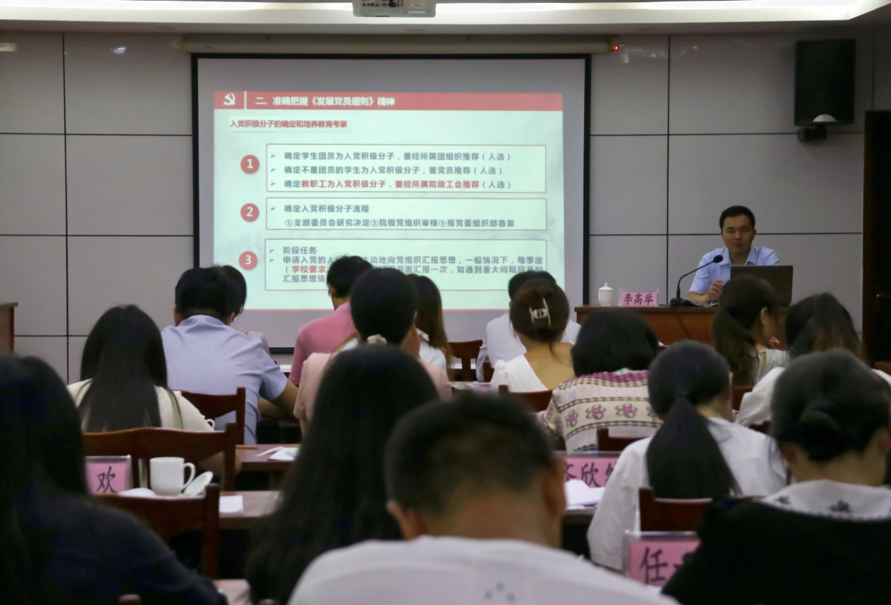 李高举首先带领全体参训人员回顾发展党员工作程序演变历程,指出各级党组织要严格管理党员队伍和党的干部队伍,严格掌握标准和程序,要准确把握《中国共产党发展党员细则》精神,不断改进提高发展党员工作质量。