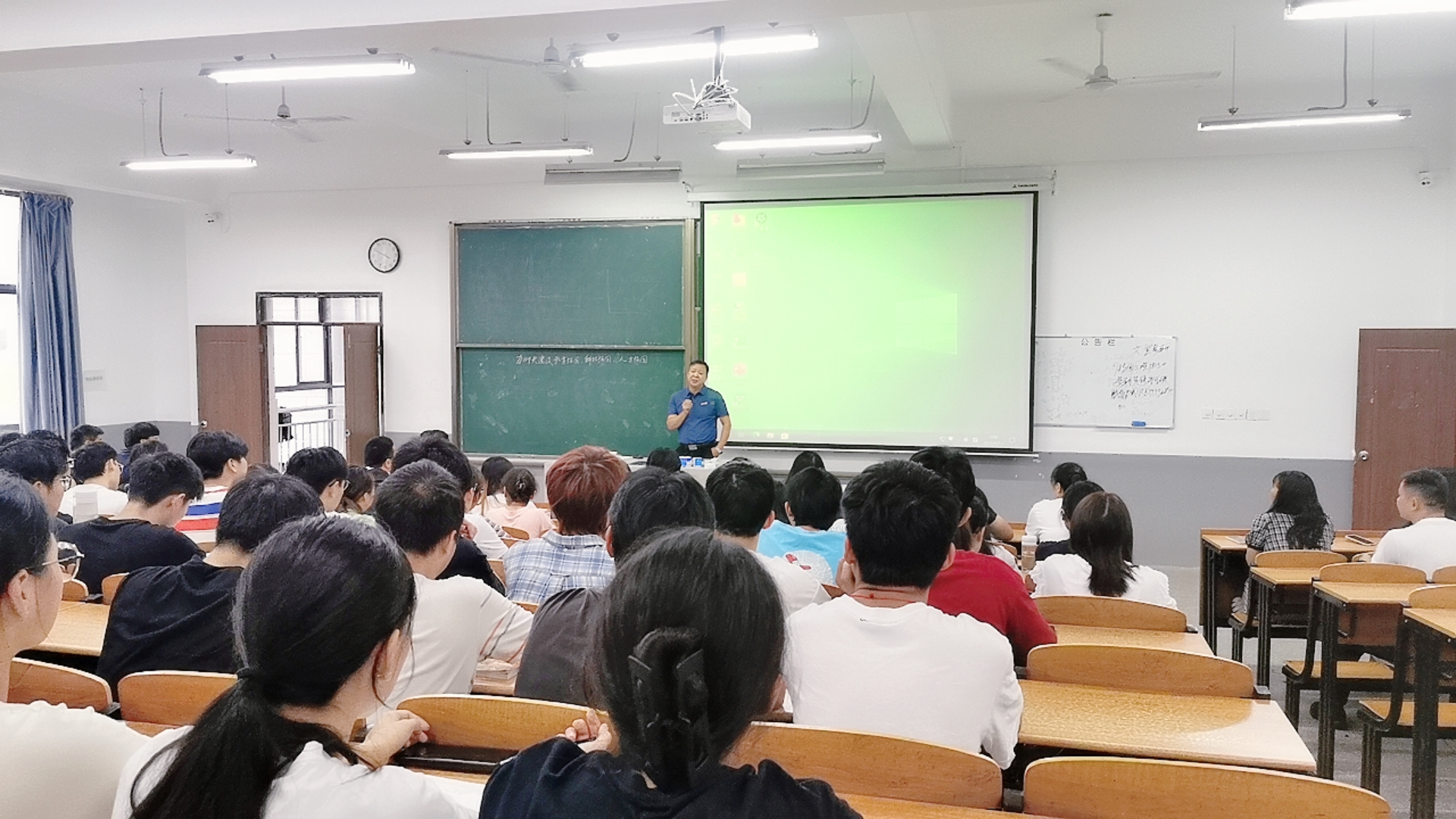 侯进元同样以“加快建设教育强国、科技强国、人才强国”为题为2022级给排水科学与工程、2022级测绘工程专业的同学们授课。以学习贯彻习近平总书记重要讲话精神为指引,讲述教育发展、科技创新、人才培养如何统筹推进,并重点强调现代化建设对人才的需求,高校在科技强国中具有先导性作用,同时告诫同学们做好职业规划、做到自律严格。