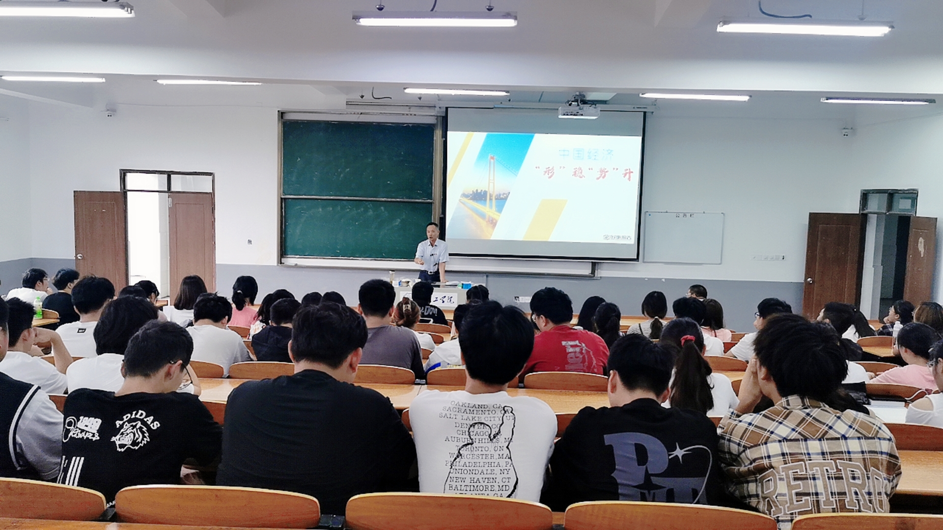 丁家云以“中国经济‘形’稳‘势’升”为主题,为2022级农业资源与环境专业的学生讲授精彩的“形势与政策”课。他分别围绕经济回升向好态势、风险挑战及中国未来经济底气三个方面进行授课,在课程中通过分析贴近学生生活实际的案例,结合最新的时政热点解读当前经济发展态势,逐步完成情感态度价值观内化于心、外化于行的精神引领。