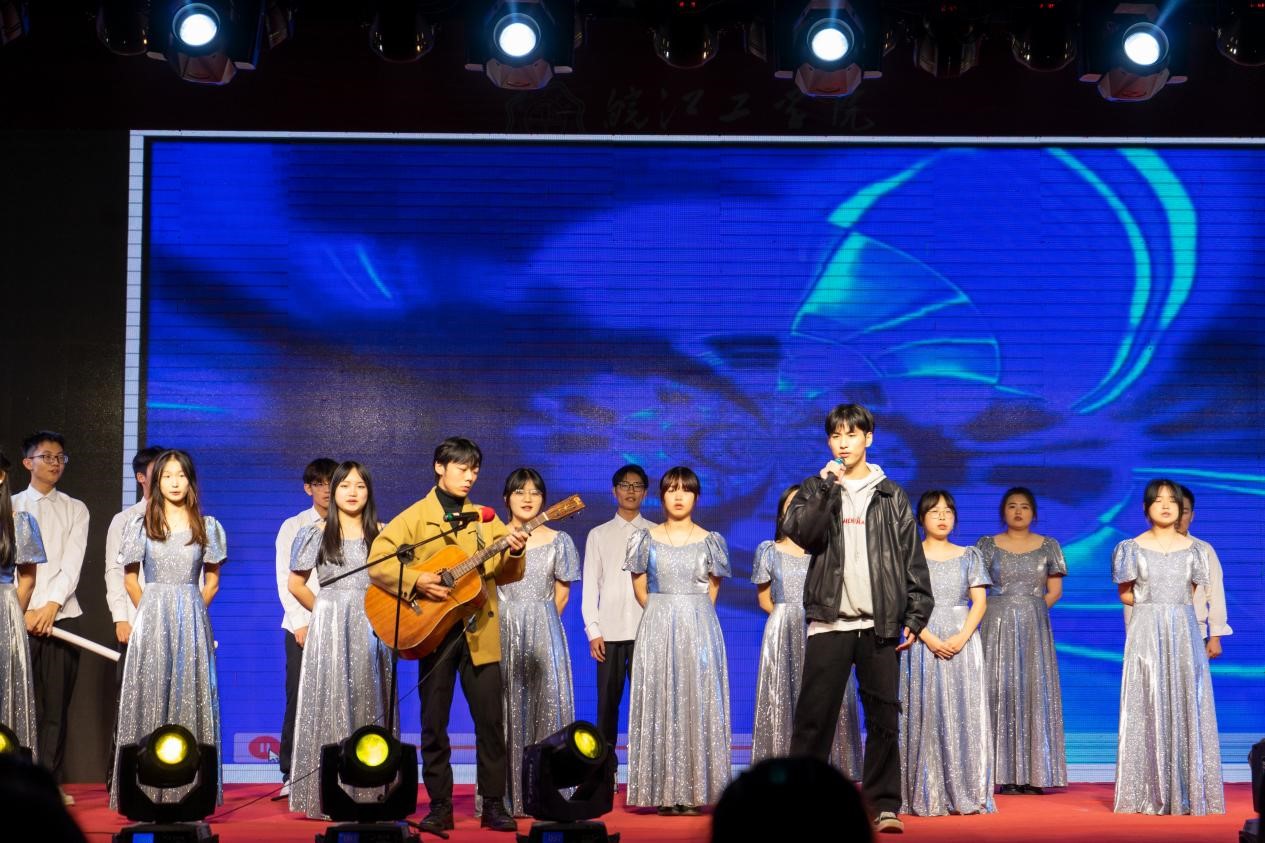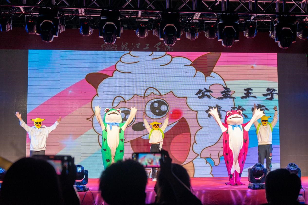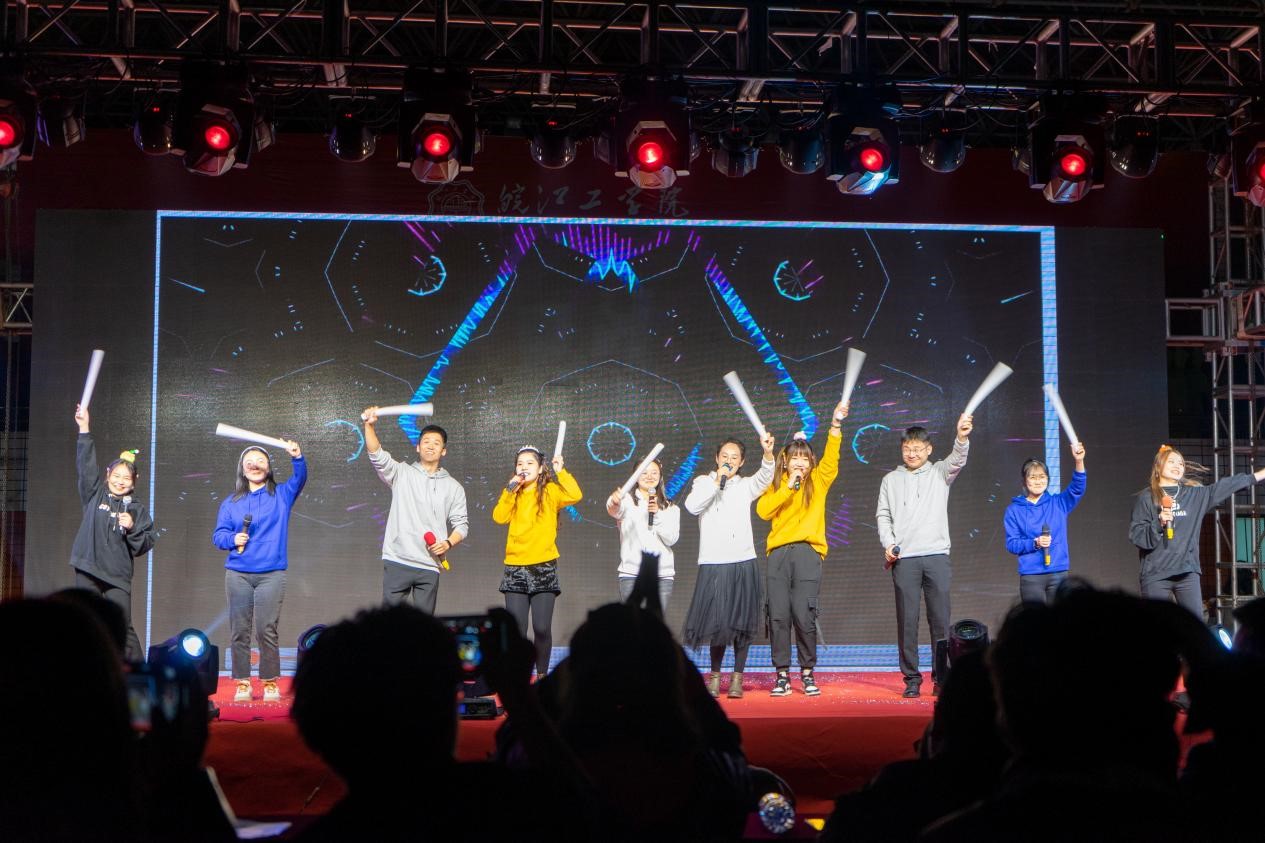激情四射的舞蹈《power》、《queen card》、《fancy》引燃全场,展现新时代青年的生机与活力;热情洋溢的朗诵《月光下的中国》诉说着我们对祖国最真挚的爱;倾情演唱的歌曲《我乘着风飞过来》、《晴天》、《明天你好+玫瑰少年》震撼全场。除此以外,跆拳道节目《危险,小心旋风》、气球节目《百变马丁》演绎出青年学子的意气轩昂,诠释出青春的别样定义;乐器节目《神灵雨》传递中国民乐的雅韵;话剧《烈火英雄》展现新时代奋战在基层一线的青年用勇气铸就民族的辉煌。现场欢歌如潮、笑靥如花,晚会最终在23级新生辅导员们的歌舞节目《teddy bear+你要跳舞吗》中落下帷幕。