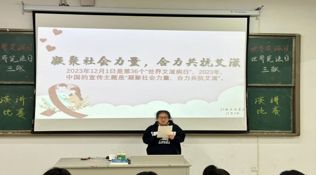 组织学生在线观看抗艾主题直播课,学习艾滋病传播和防治知识。团委微信公众号、青年志愿者协会抖音号、QQ号等线上平台共同发声,制作“世界艾滋病日”专题宣传内容,发挥好新媒体平台辐射作用,提高学生自我保护意识、能力和责任。