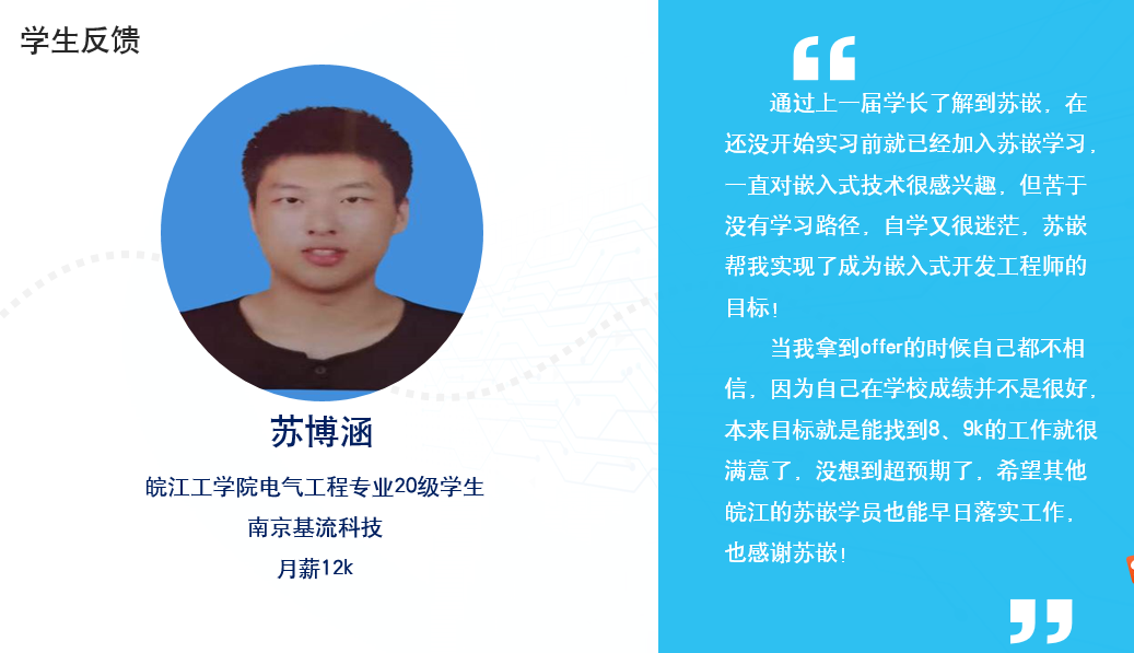 图为电气专业2020级学生苏博涵主动参加企业实践提前就业高薪岗位