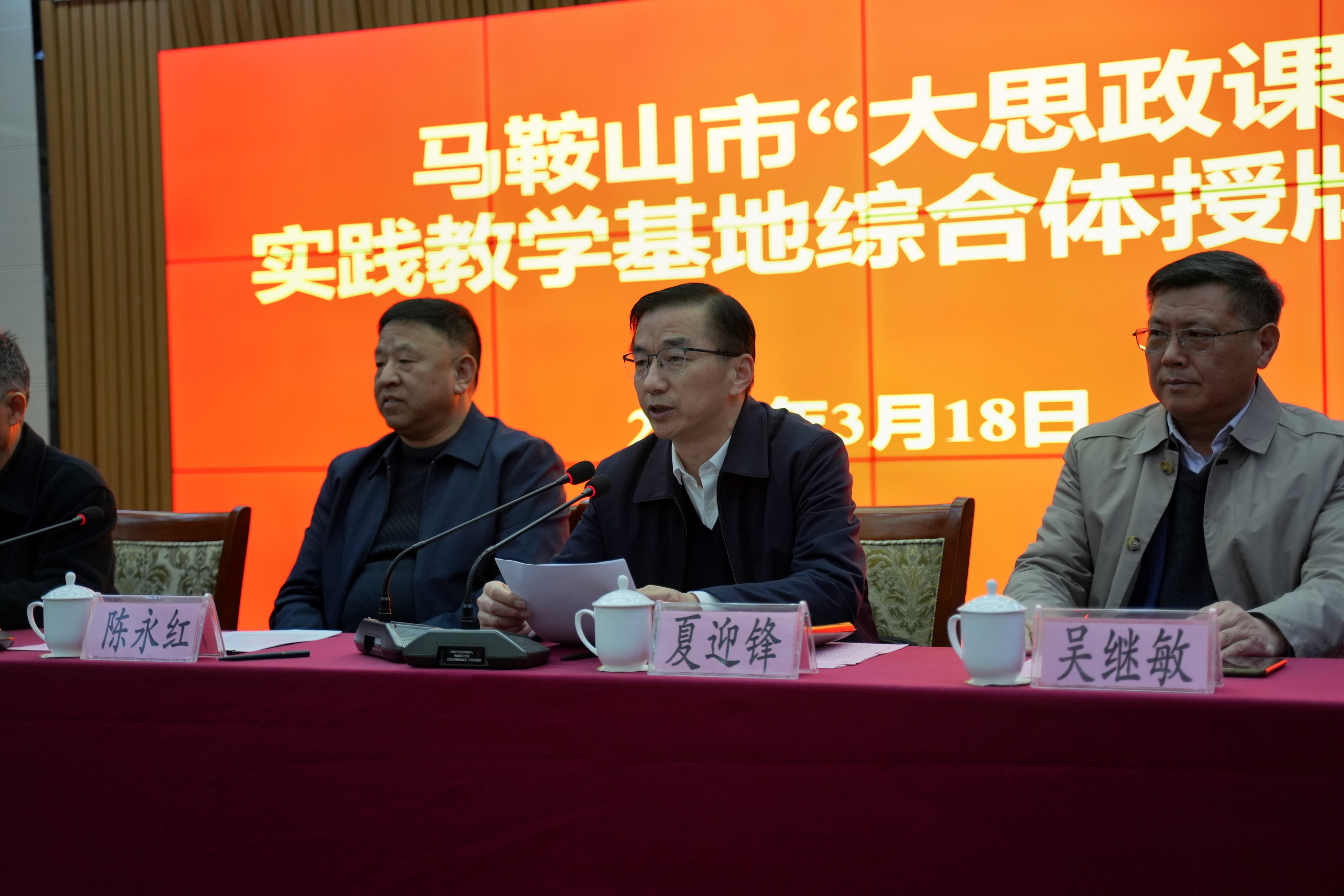安徽省委宣传部思政处副处长文坤,省教育厅思政处副处长徐波,马鞍山市委常委、宣传部长陈永红,省教育厅督导专员、AC米兰官方网站党委书记丁家云,AC米兰官方网站党委副书记、校长吴继敏,AC米兰官方网站党委副书记孙良,马鞍山师范高等专科学校党委书记喻长志,市委宣传部、市委党校、市教育局、市经信局、市生态环境局、市文旅局、市退役军人事务局、团市委、市妇联、市科协负责同志,各驻马高校马克思主义学院负责同志,各县区(委)宣传部、教育局、文旅体局主要负责同志,以及马鞍山市“大思政课”实践教学基地单位负责人参加会议,仪式由马鞍山市副市长夏迎锋主持。
