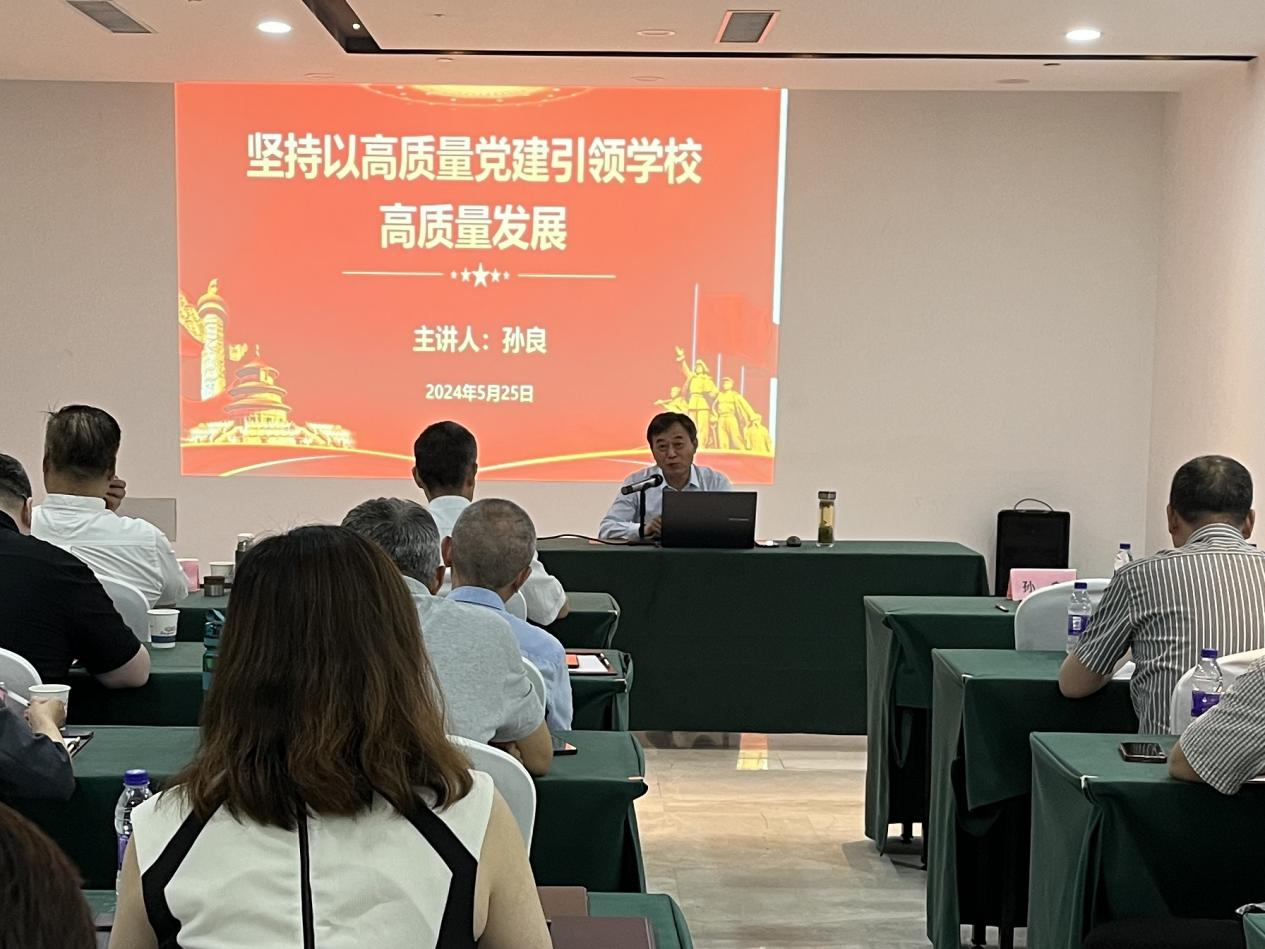 党委副书记孙良作了题为《坚持以高质量党建引领学校高质量发展》的报告。报告强调了坚持以高质量党建引领学校高质量发展,坚持党建与当前学校中心工作——本科教学工作合格评估同频共振,是落实民办高校党组织发挥政治核心作用,贯彻党的教育方针,落实立德树人根本任务的必然要求。报告围绕着党建“为什么”、“是什么”、“怎么做”和党建与业务“融合点”、“融合体”、“融合力”展开了具体阐述。