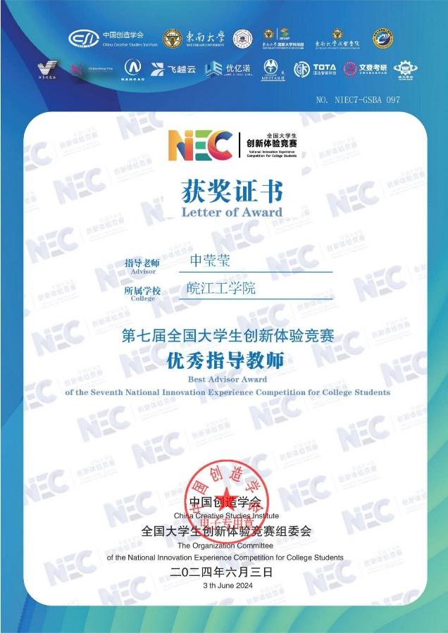 米兰学子在第七届全国大学生创新体验竞赛中荣获全国一等奖