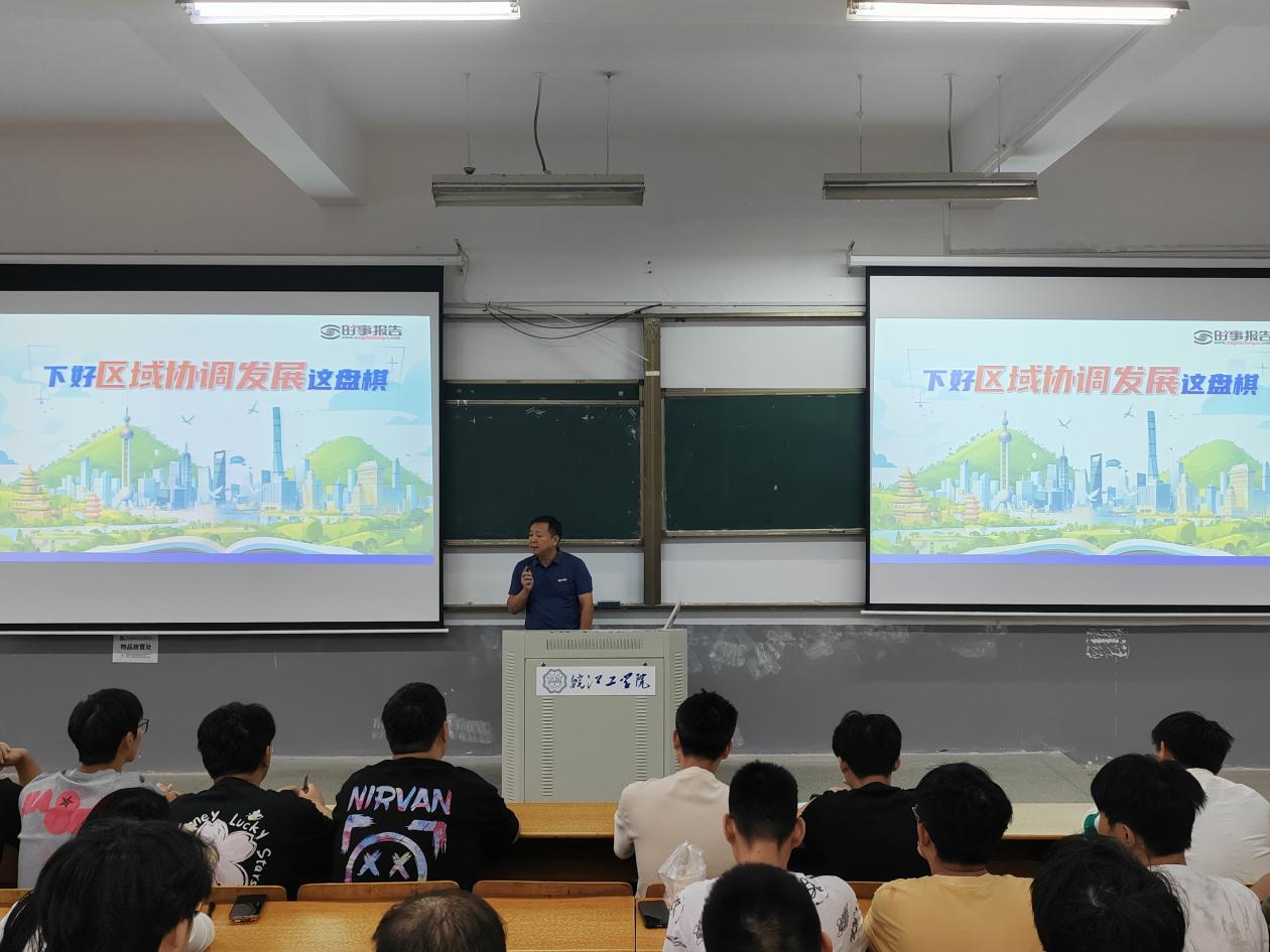 侯进元以“下好区域协调发展这盘棋”为题,为23水工专业的学生讲授思政课。围绕“区域协调发展的特征、历史性成就变革、面临问题和挑战及做法”阐释协调是高质量发展的内生特点,并结合各自的工作生活经历,向学生分享了区域协调发展的案例。