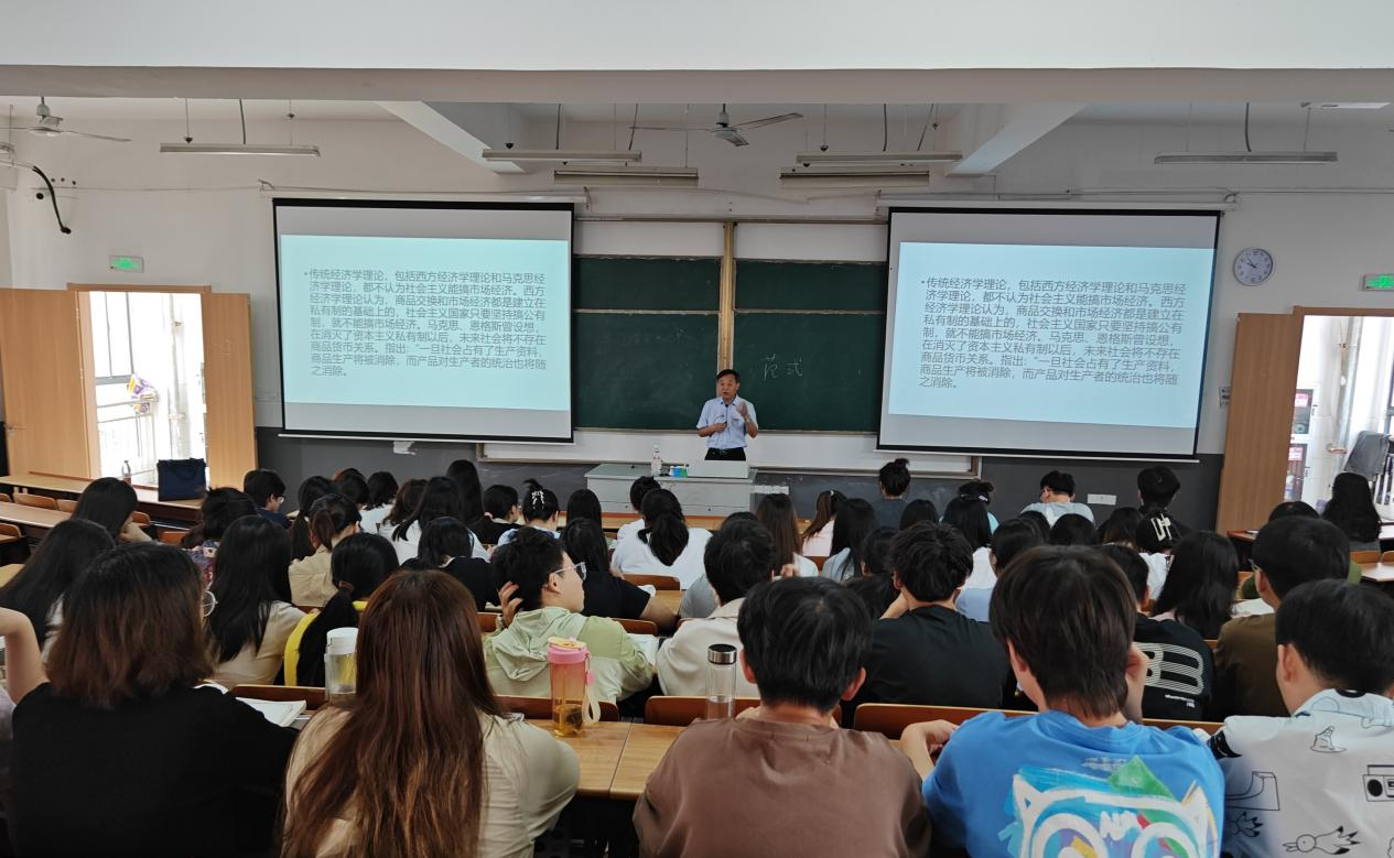 孙良以“构建高水平社会主义市场经济体制——《中共中央关于进一步全面深化改革推进中国式现代化的决定》”为题,为21级人力资源管理专业同学们上了一堂精彩的思政课。他结合自己的学术研究与专业领域,从我国社会主义市场经济体制提出的背景讲起,引入邓小平南巡路上的事迹,生动形象的讲述了社会主义市场经济体制的形成与发展。同时,讲到构建高水平社会主义市场经济体制的六项关键任务,同学们听课认真,反响热烈,取得了较好的教学效果。