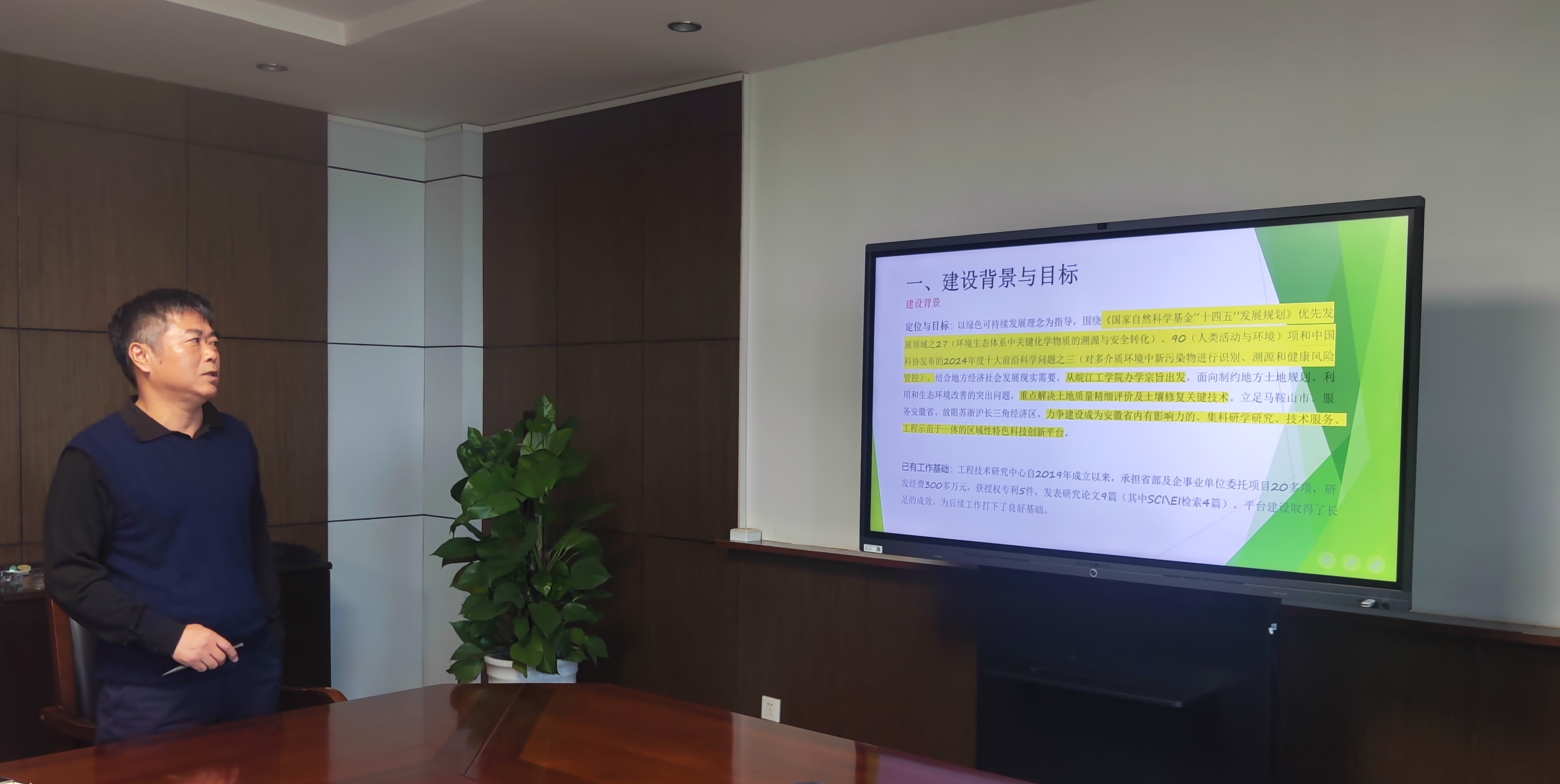 胡钢首先对“土地检测、评估与修复工程技术研究中心”目前的建设方案和运行情况做了简要概括,并且介绍了新一轮建设方案的背景和目标。