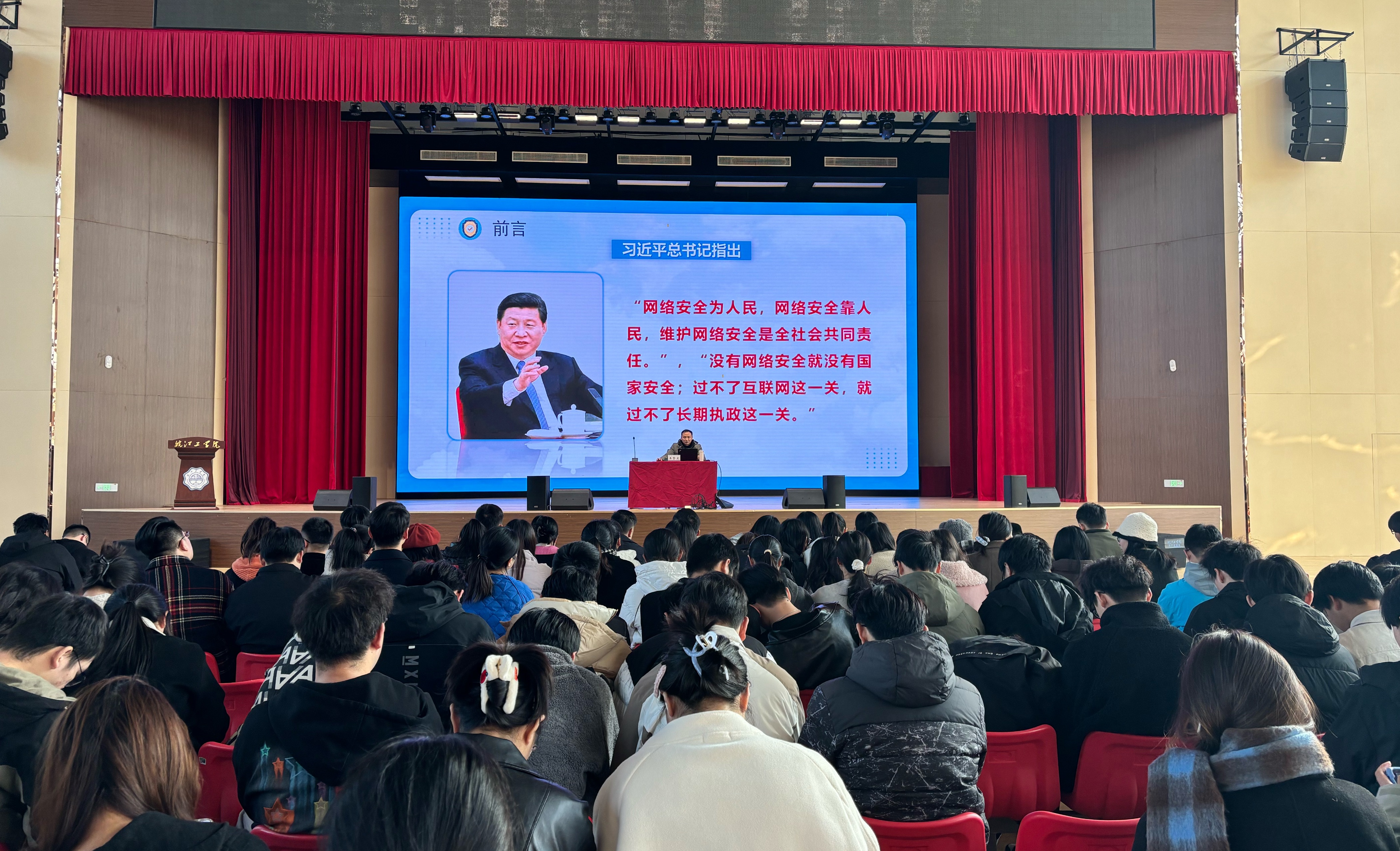 为提高米兰师生网络安全法律法规意识,加强网络管理工作,进一步规范网络行为,11月27日下午,学校在霍里山校区体育馆开展网络安全培训,并邀请到马鞍山市公安局网络安全保卫支队王贤文警官给大家开展题为 “‘互联网 +’时代网络安全浅析” 的讲座。学生工作部副部长许戎主持本次培训会,学工部、院务部保卫科相关领导以及霍里山校区全体辅导员、700余名学生参会。