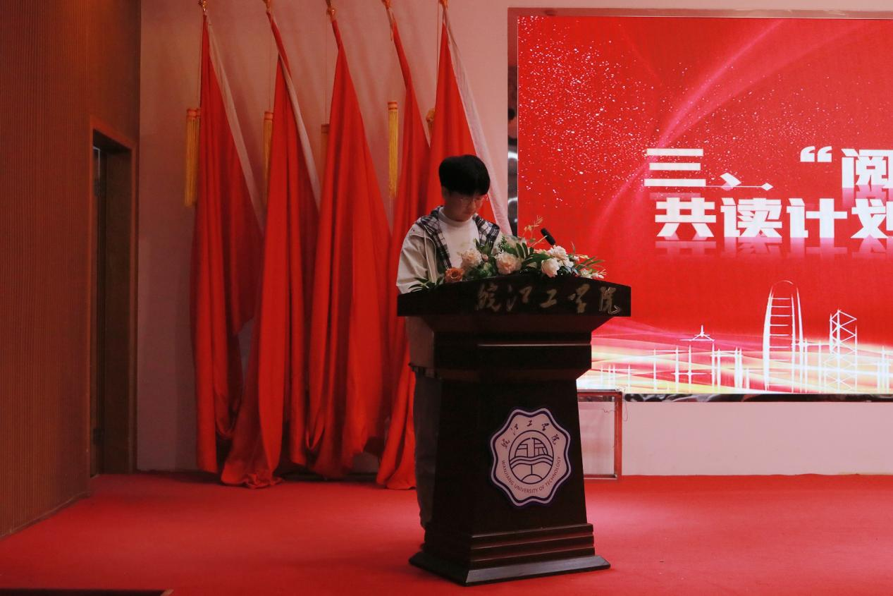 “阅读改变世界” 21天共读计划获奖学生代表23级安全工程专业张海俊同学分享了自己在共读计划中的成长与收获,讲述了如何从最初的坚持阅读,到逐渐被书中的智慧所启迪,最终养成良好阅读习惯的心路历程。真挚的话语不仅激励着台下的同学们积极投身阅读,也为共读计划的成果做了生动的诠释。