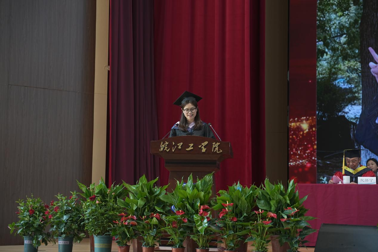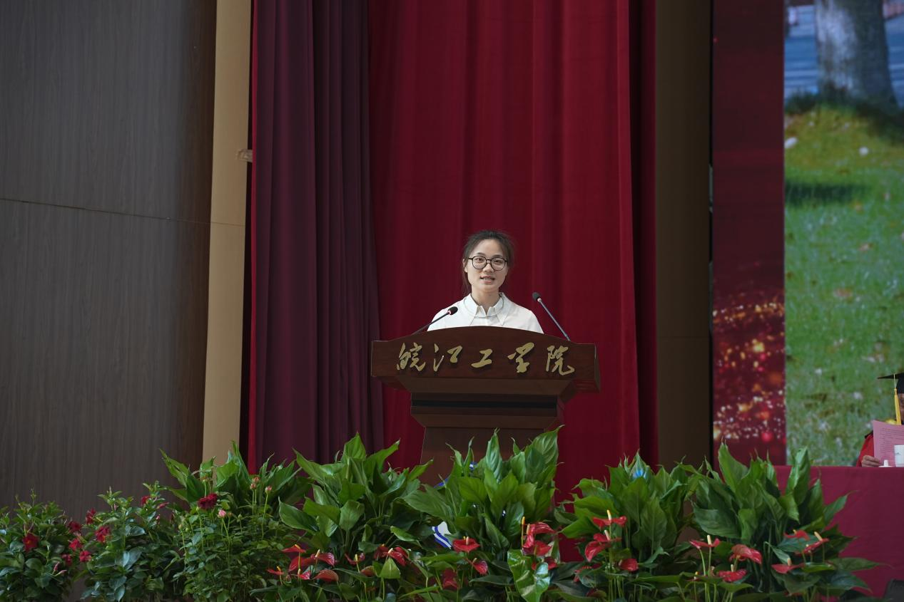 电信工程学院自动化教研室主任陈玲作为教师代表发言,她以师者的温情与期许,为毕业生送上临别赠言。“毕业是学习的新起点,愿你们保持好奇、坚守热爱,无论身处顺境逆境,都记得‘米兰’永远是你们的后盾。”陈玲老师的句句嘱托,如春风化雨,滋润着毕业生们的心田。