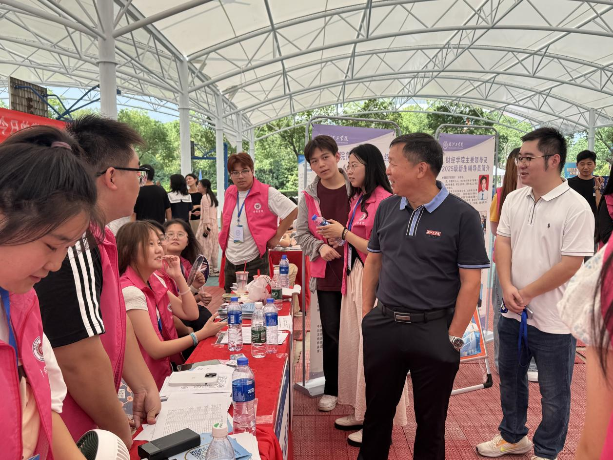 新生报到期间,学校及各二级学院领导多次前往迎新现场,深入各报到点、服务点及宿舍区,实地查看秩序与服务情况。在绿豆汤服务点,领导们特意询问饮品补给频率,叮嘱工作人员“天气炎热,及时补充,确保大家随时能喝到清凉解渴的绿豆汤”;与新生及家长交流时,他们耐心询问“来校路上顺利吗”“校园环境还习惯吗”,并及时协调解决报到过程中出现的行李存放困难、流程疑问等问题。