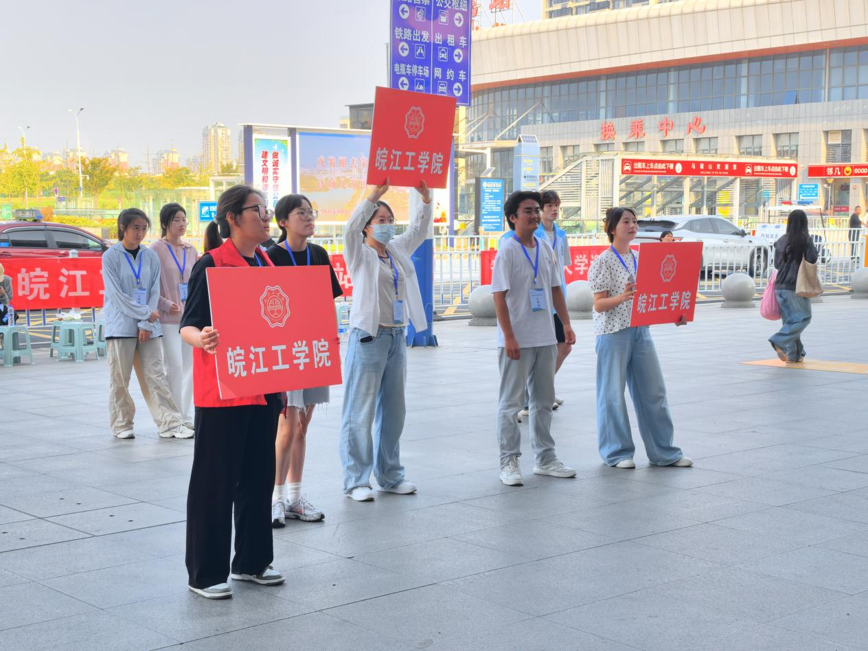 为让新生从踏入马鞍山的那一刻起就感受到“家的温度”,学校提前统筹各二级学院、相关部门教职工和迎新志愿者的力量,将细致服务贯穿迎新全程。在马鞍山东站、郑蒲港校区各报到接待点,教职工与迎新志愿者早早到位等候,专属迎新大巴循环往返,从清晨到深夜不间断提供免费接送服务,全力打通新生从车站到宿舍的“最后一公里”。