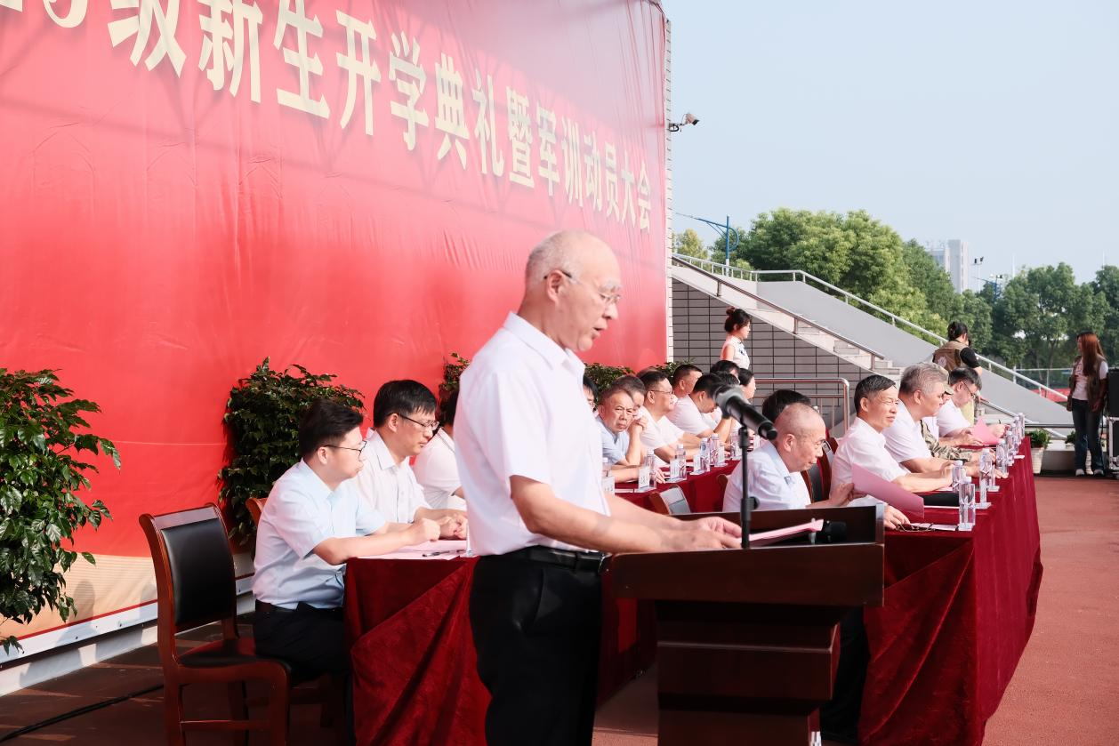 郑明东代表全校师生员工,向2025级新生致以热烈欢迎与诚挚祝贺,欢迎其加入AC米兰官方网站大家庭。他对新生提三点期望:一是修品德,引“大学之道”,嘱传承米兰人“宽厚有担当”口碑,学包容感恩;二是勤学习,引“博观而约取”,强调大学自主学习,需钻研探讨;三是强体魄,引“体者,载知识之车”,倡锻炼塑体磨意志。最后愿师生携手绘校未来。