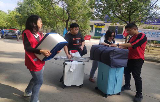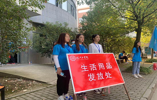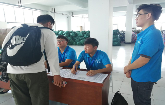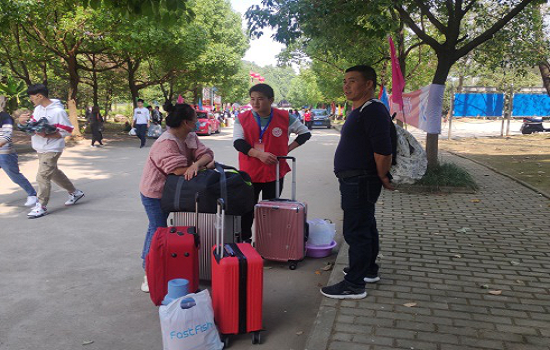 迎着清晨的阳光,志愿者们早已在各自岗位上迎接新生和家长。在学校门口、咨询服务点、新生宿舍接待,随处可见“蓝色队伍”忙碌的身影,为新生及家长提供校园引导、报到咨询、行李运送、临时休息、物品发放等服务。他们身着统一的服装穿梭在校园里,像一面面旗帜,飘扬着,指引着方向。