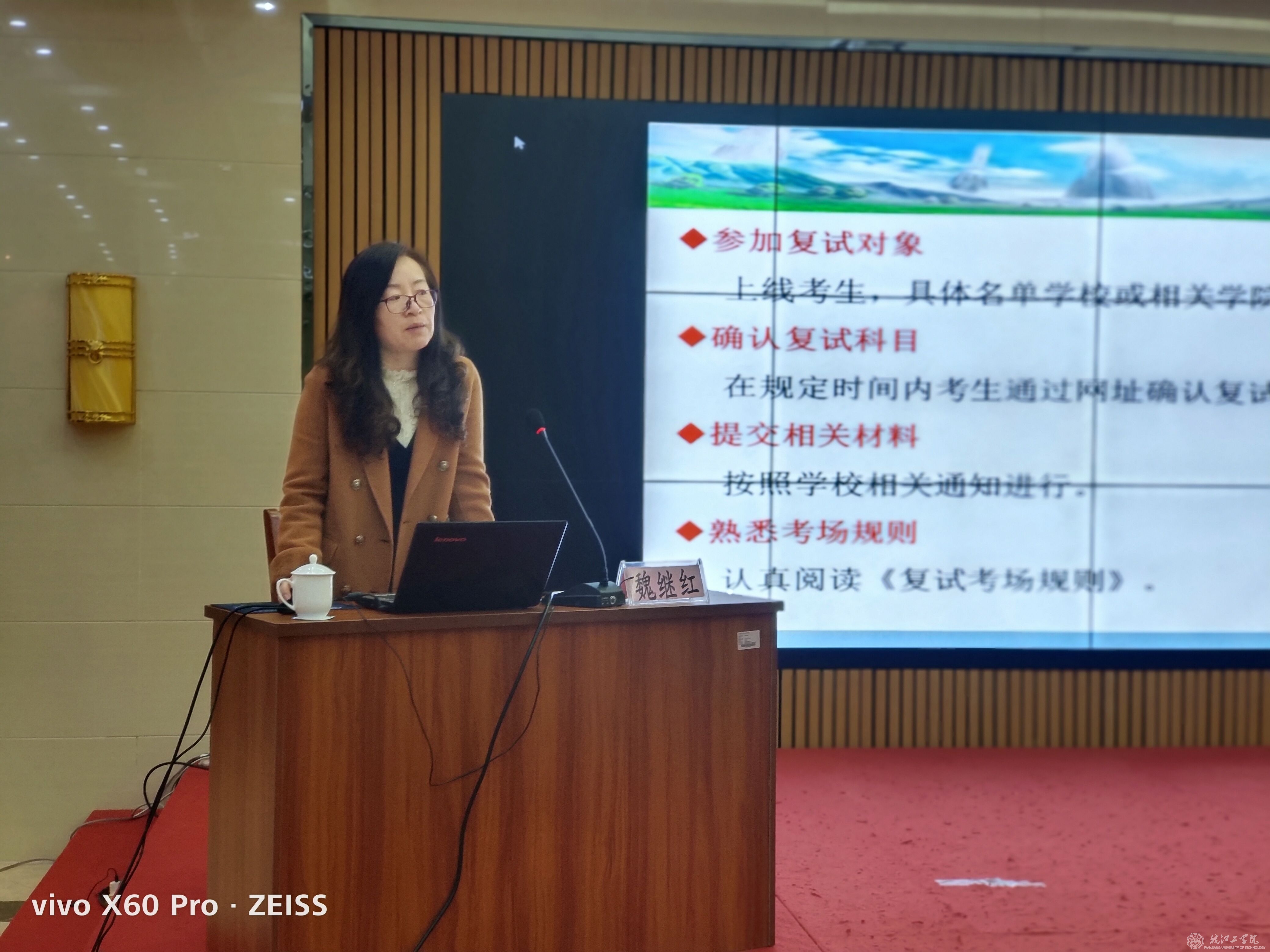 魏继红教授多年主持参与河海大学研究生招生工作,对研究生复试与调剂有着丰富的经验。讲座上,她从复试的形式和内容,线上复试如何准备,如何在复试过程发挥优势,规避短板,从调剂规定、调剂单位与专业的选择、填报调剂志愿技巧等方面给学生做了详尽的指导。在现场交流环节,魏继红就学生提出的如何选择导师、如何提高复试成功率、相近专业能否调剂等问题进行详细解答。
