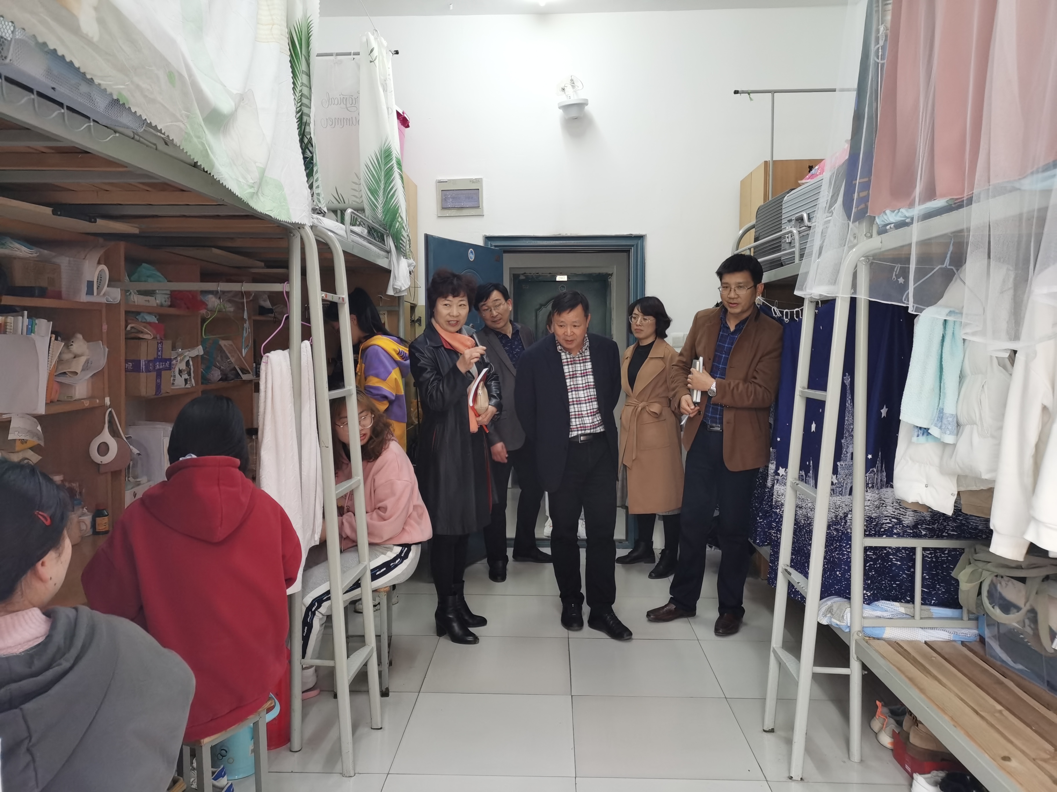 侯进元一行实地走访了我院学生劳育基地、宿舍和文化走廊,查看了学生德育档案、辅导员值班记录、日常考勤公示等资料,了解学生劳育教育成果、宿舍的卫生、安全及生活等情况,并与学生亲切交流。