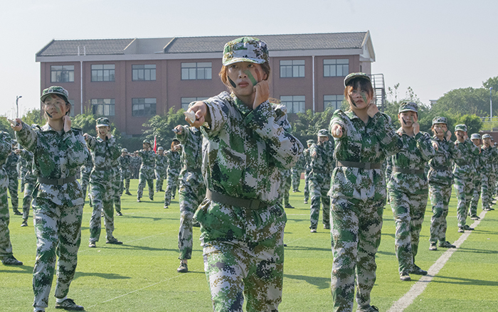 在军训成果汇报阶段,参训学员不断变化方阵,摆出党徽、“100”“2021”等图案庆祝中国共产党成立100周年,通过“祖国”“人民”“中国”等文字方阵,礼赞国庆。