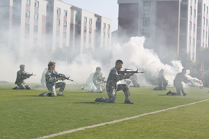 女子匕首格斗术、男子长枪格斗术表演接踵而来。2021级新生们画着迷彩装,尖刃出鞘,长枪来袭,一招一式敏捷有力,英勇无畏。“噼啪”声响,烟雾弥漫,男子综合战术表演开始。朦胧烟雾中,一道道身影手持枪械,卧倒、匍匐、跪滑……在精彩纷呈的汇报表演中,AC米兰官方网站新生们展现了爱党爱国的青春底色。