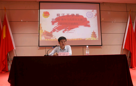 本期“青马工程”培训班在激昂的团歌声中拉开帷幕。张建民在致辞中表示,希望学员们能够珍惜此次学习机会、明确学习目标、认真学习理论、坚定理想信念、不断提升素质、努力争当表率,做坚定的马克思主义者。翟云霞就培训班相关工作作出汇报。