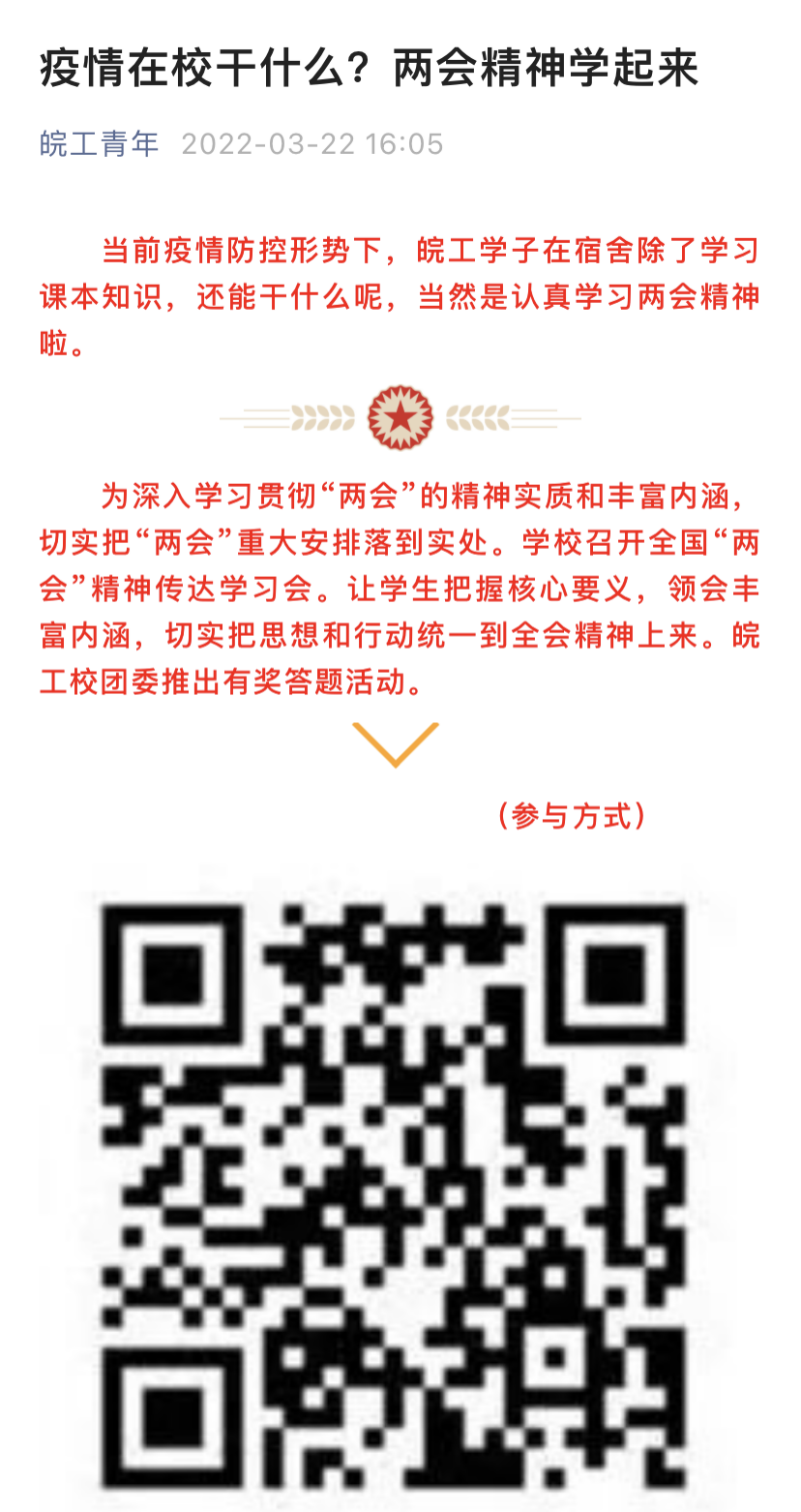 校团委聚焦主责主业,以思想政治引领为根本,团结带领广大青年开展“青年大学习”、两会精神学习等网络学习活动,学习覆盖率达90%。充分发挥基层团支部的的“战斗堡垒”作用,积极开展“请党放心,战疫有我”线上主题团日活动,把疫情防控伟大实践与青年团员思想引领相结合。调动各级组织的力量,制作专题短片、抖音视频,感悟防疫事迹、分享战疫故事,引导学生在抗疫精神中坚定战胜疫情的信心和决心。
