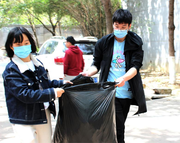 在疫情防控期间,她主动深入学生中间,与学生们主动沟通、同乐同行,她坚持每天对宿舍进行两次消杀、消毒,做好防护工作,打扫每栋宿舍楼的卫生;早餐及晚餐前对隔离观察楼层及公共区域等进行全面消杀防疫,针对生活垃圾进行统一清运处置。