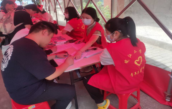 在医护人员的指导下,志愿者们的配合下,献血者认真登记信息表,进行抽血化验和身体检查。符合条件的献血者来到献血处,挽起衣袖、伸出手臂、献出热血。同学们积极热情、医生们耐心解惑、志愿者们保障蛋糕、鸡蛋等食物,现场秩序温馨有序,献血工作得以顺利开展。