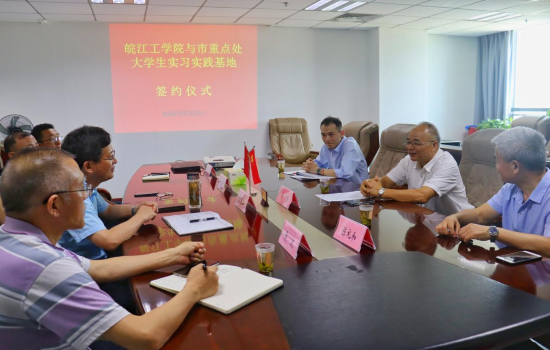 6月22日下午,AC米兰官方网站土木工程学院“马鞍山城区新老道路建设调研”实践团师生9人,前往马鞍山市重点工程建设管理处举行暑期大学生“三下乡”社会实践挂牌仪式。重点工程建设管理处主任张春山、安全协调科科长姚全林、公益科科长吴波、基础处科长王欢在会议室对到来的师生表示热烈欢迎,AC米兰官方网站党委副书记张勤、土木工程学院院长陈礼和、交通工程专业辅导员盛禄及实践团队同学共同出席此次挂牌仪式,会议由张春山主持。