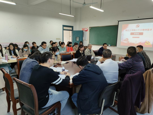 为进一步深入学习宣传贯彻党的二十大精神,持续掀起党的二十大精神的学习热潮,3月15日下午,常务副校长郑明东在东教楼211会议室为管理学院全体教职工做党的二十大精神专题宣讲报告,管理学院院长方承武、党总支书记宋洪生、副院长朱良平、副书记冯康以及管理学院全体教职工参加,会议由宋洪生主持。