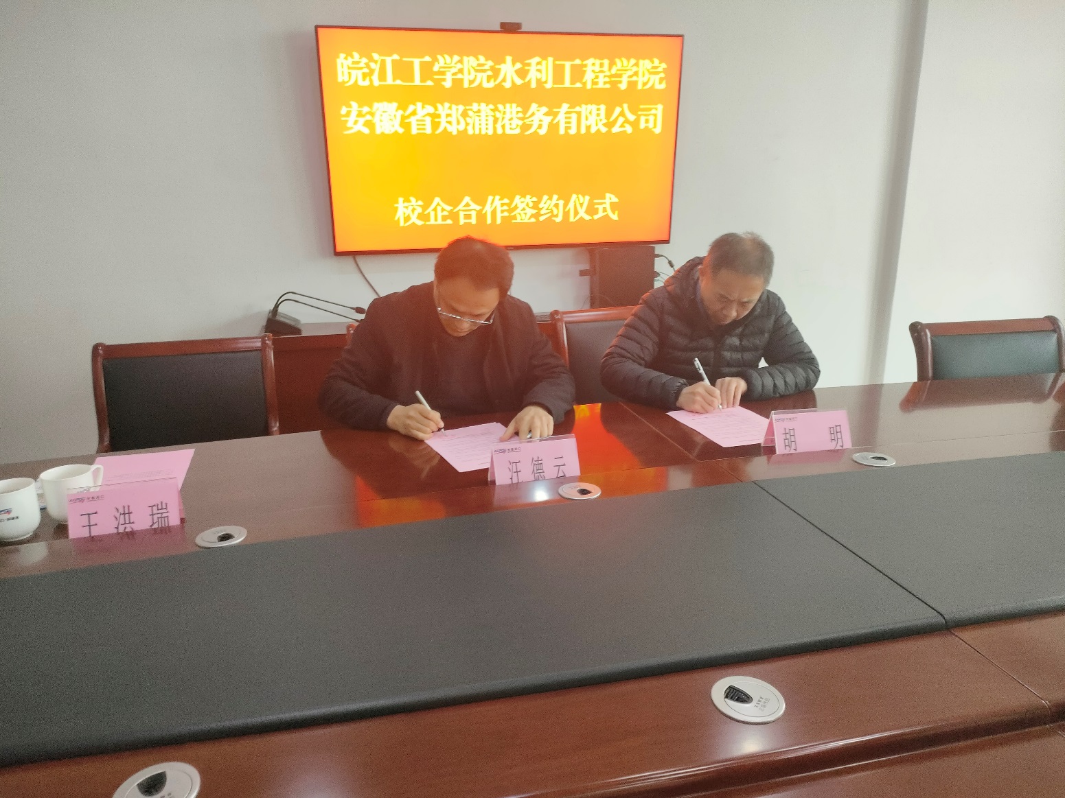 3月20日下午,水利工程学院院长胡明一行前往郑蒲港新区,与安徽省郑蒲港务有限公司举行大学生实习实践基地签约仪式。安徽省郑蒲港务有限公司董事长汪德云、副总经理谈春根、综合部兼市场部负责人李明等出席了仪式。