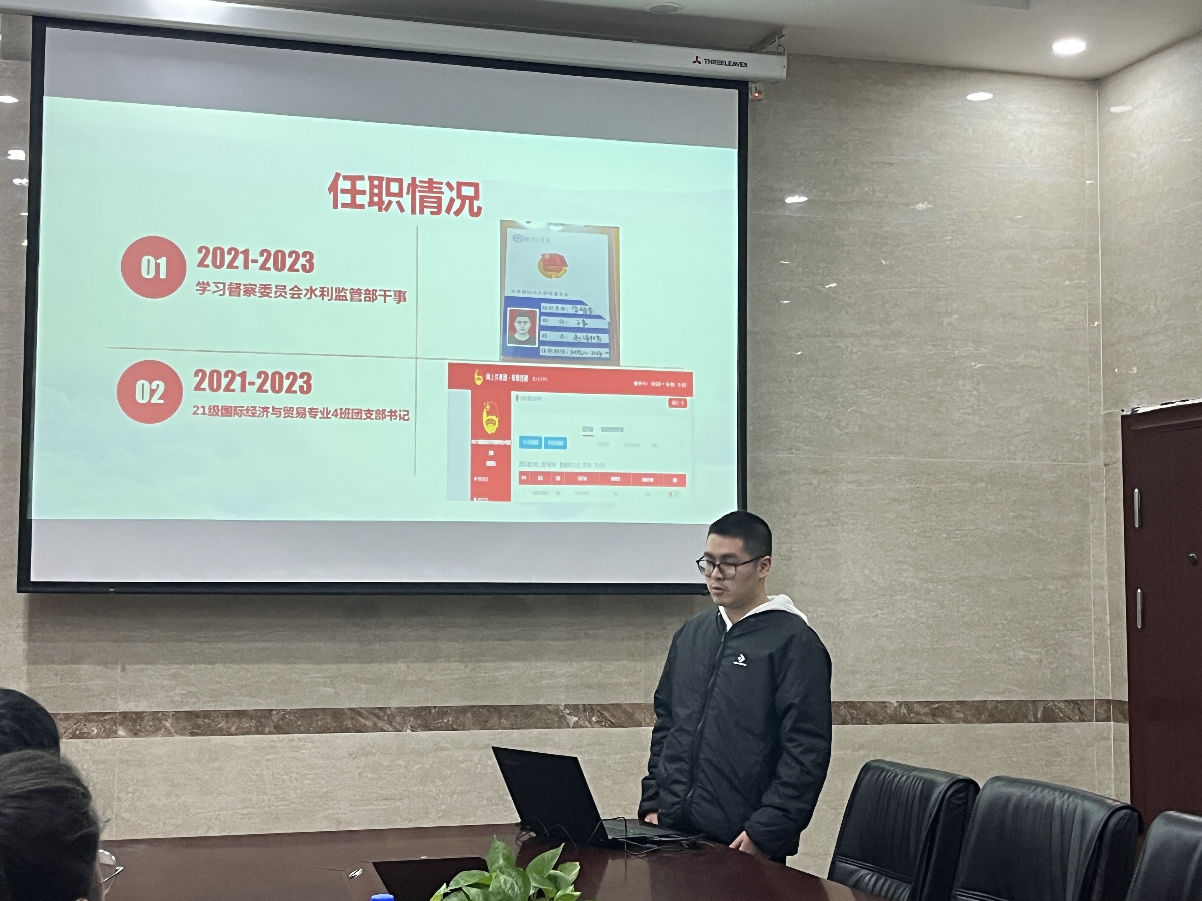 3月22日下午,财经学院在郑蒲港校区2号会议室召开2023年发展对象答辩会。副书记许戎,学生支部书记李伦珑、张宇,辅导员乾丞健、嵇健、王慧慧参会。二年级发展对象学生参与现场答辩。