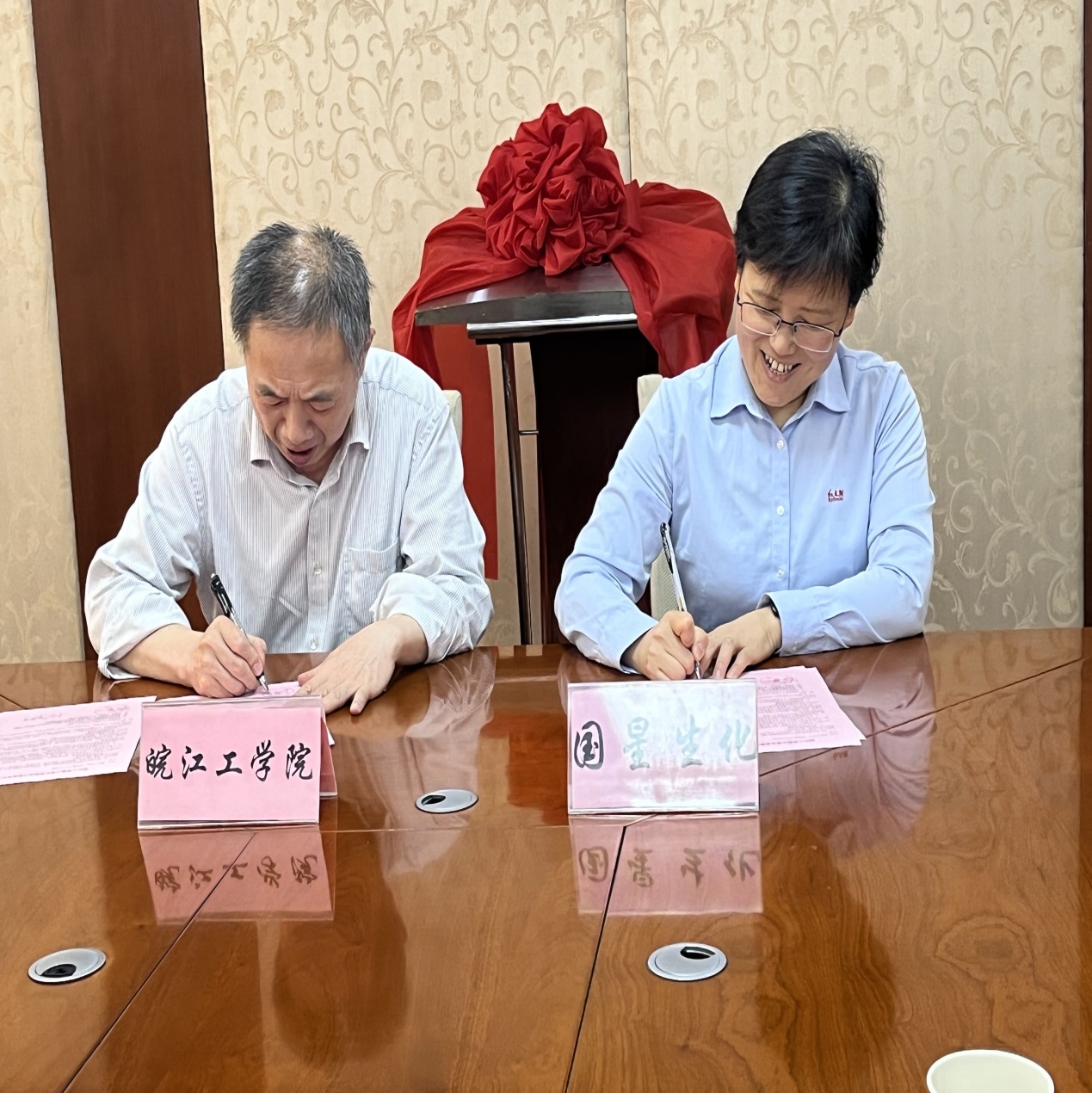 4月20日上午,水利工程学院与安徽国星生物化学有限公司合作共建大学生实习实践基地的签约仪式在国星生化会议室举行。国星生化副总经理韦琛鸿、人企管理部经理李宁、人企管理部副经理朱有智、水利工程学院院长胡明、农资环教研室主任黄双双,教师代表王宗亚和邬洪艳出席了仪式。