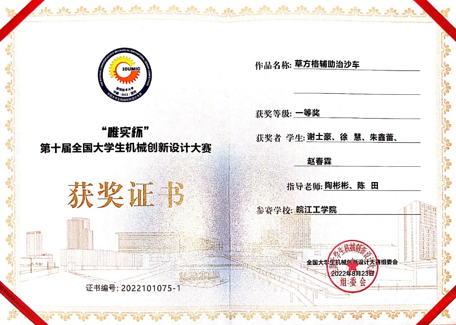 机械工程学院以班主任制度为抓手,以实验室全面开放为支撑,以大学生科技创新协会为平台,以大学生科技创新活动为中心,以科协培训为手段,构建五位一体创新创业教育体系,组织学生参加全国大学生机械创新设计大赛、大学生先进成图技术与产品信息建模创新大赛、HONDA中国节能竞技大赛、大学生智能车大赛、大学生工程训练综合能力竞赛、“互联网+”创新创业大赛、“挑战杯”中国大学生创业计划竞赛、大学生数学建模竞赛等多项赛事,获国家级奖励50余项、省部级奖励100余项。2022年8月,第十届全国大学生机械创新设计大赛决赛在深圳技术大学举行,学院谢士豪、徐慧、朱鑫蕾等同学参与完成的作品《草方格辅助治沙车》最终斩获全国一等奖,创下了学校在该项赛事历史上的最佳成绩。值得一提的是,AC米兰官方网站是安徽省首位入围该项国家A类顶级赛事并取得一等奖的民办高校!