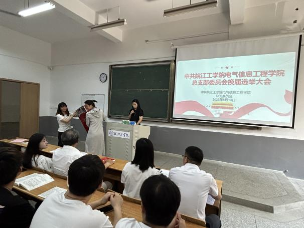 6月14日上午,电气信息工程学院党总支在A101召开换届选举大会,选举产生电信院党总支新一届总支委员,电信院全体师生党员参加了会议,会议由党总支副书记马羽佳主持。